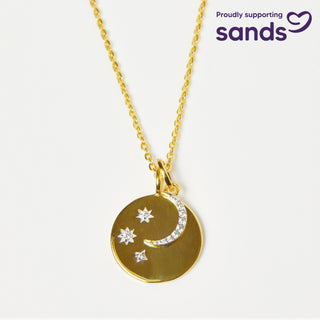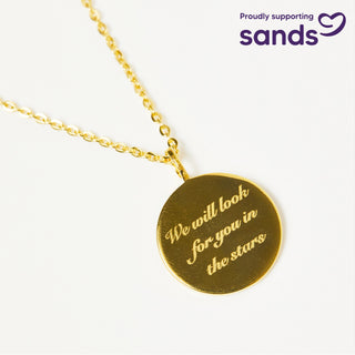 "We will look for you in the stars" Coin Necklace with Crescent Moon Charm