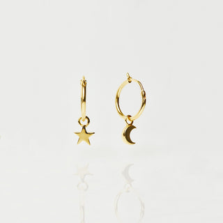 Star & Moon Charm Hoop Earrings In Gold Vermeil