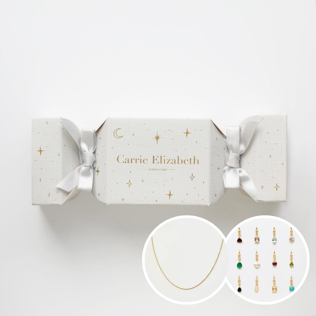 Nestled inside this exclusive Carrie Elizabeth cracker is a truly personal gift. We've paired a gorgeous birthstone pendant with one of our best-selling chains in your choice of length.