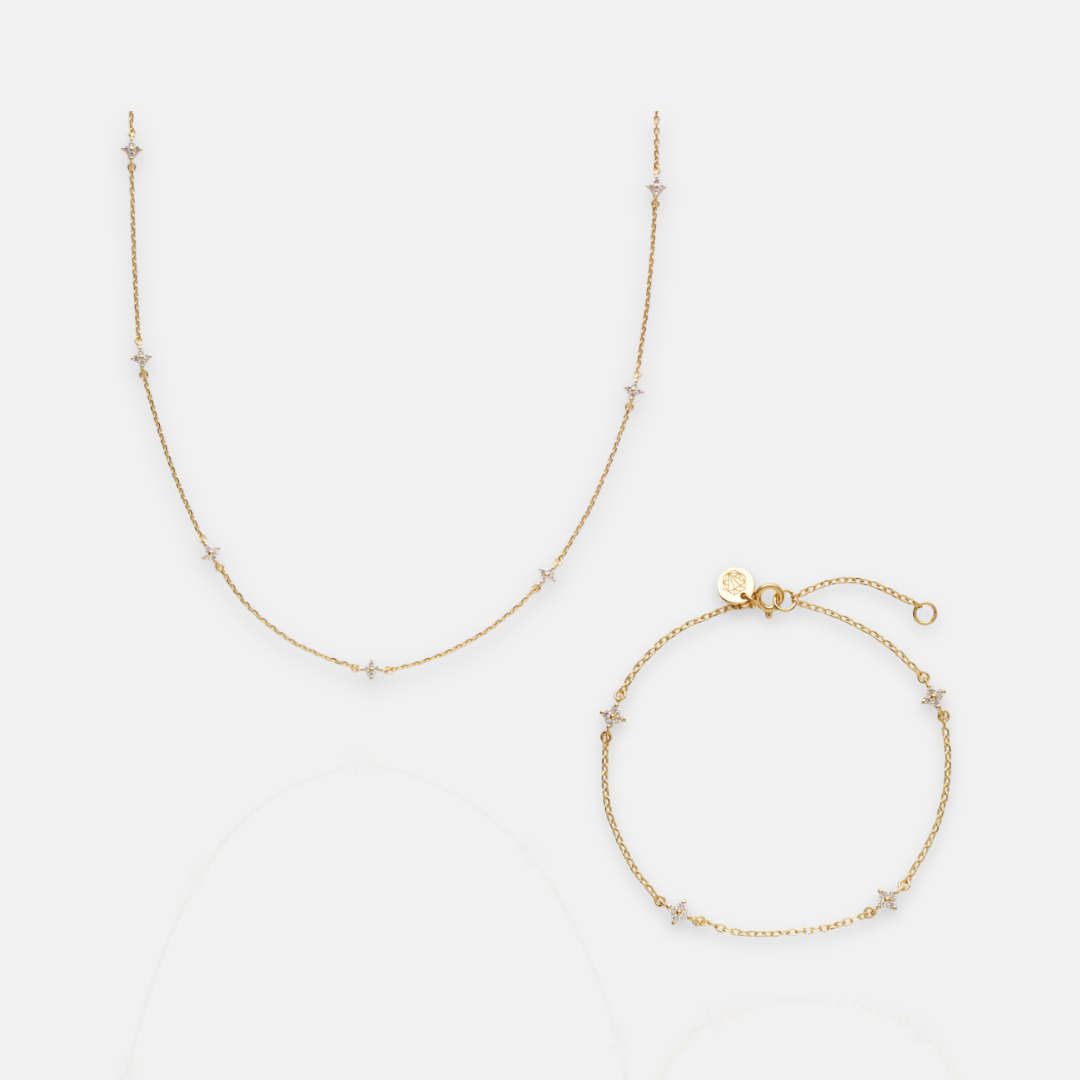 The perfect set for subtle sparkle lovers! The delicate white zircon petals add a touch of elegant sparkle to your everyday look.