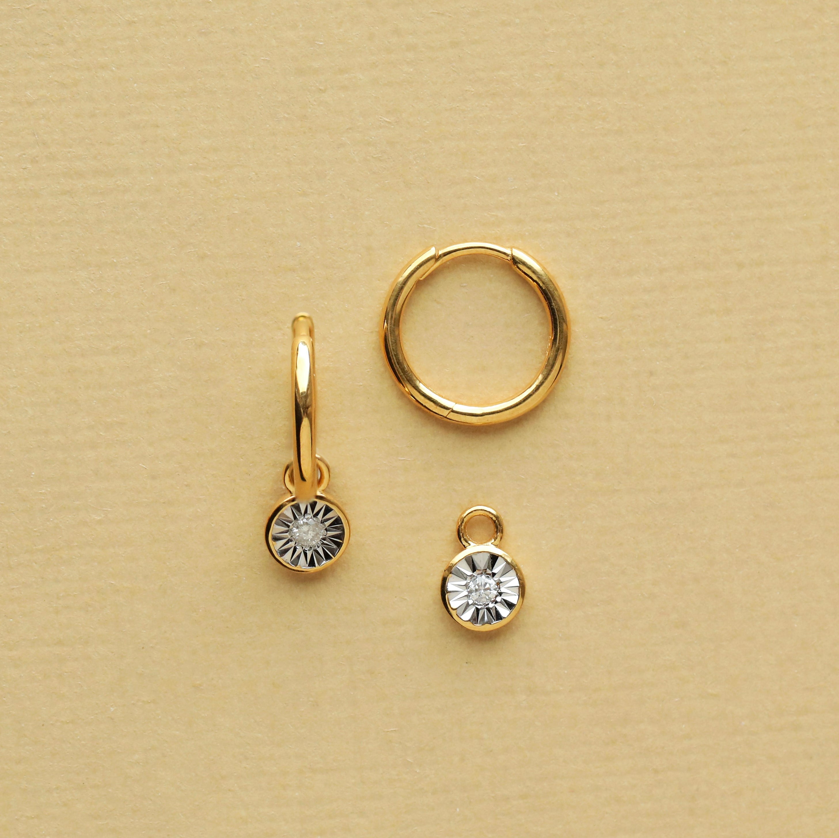 We’re all about clever styling tricks, so we’ve made the diamond drop charm removable. Wear the hoops alone for minimalist polish, or add the charm for subtle sparkle. Two hoops in one – perfect for light-packers, day-to-nighters and effortless everyday styling.