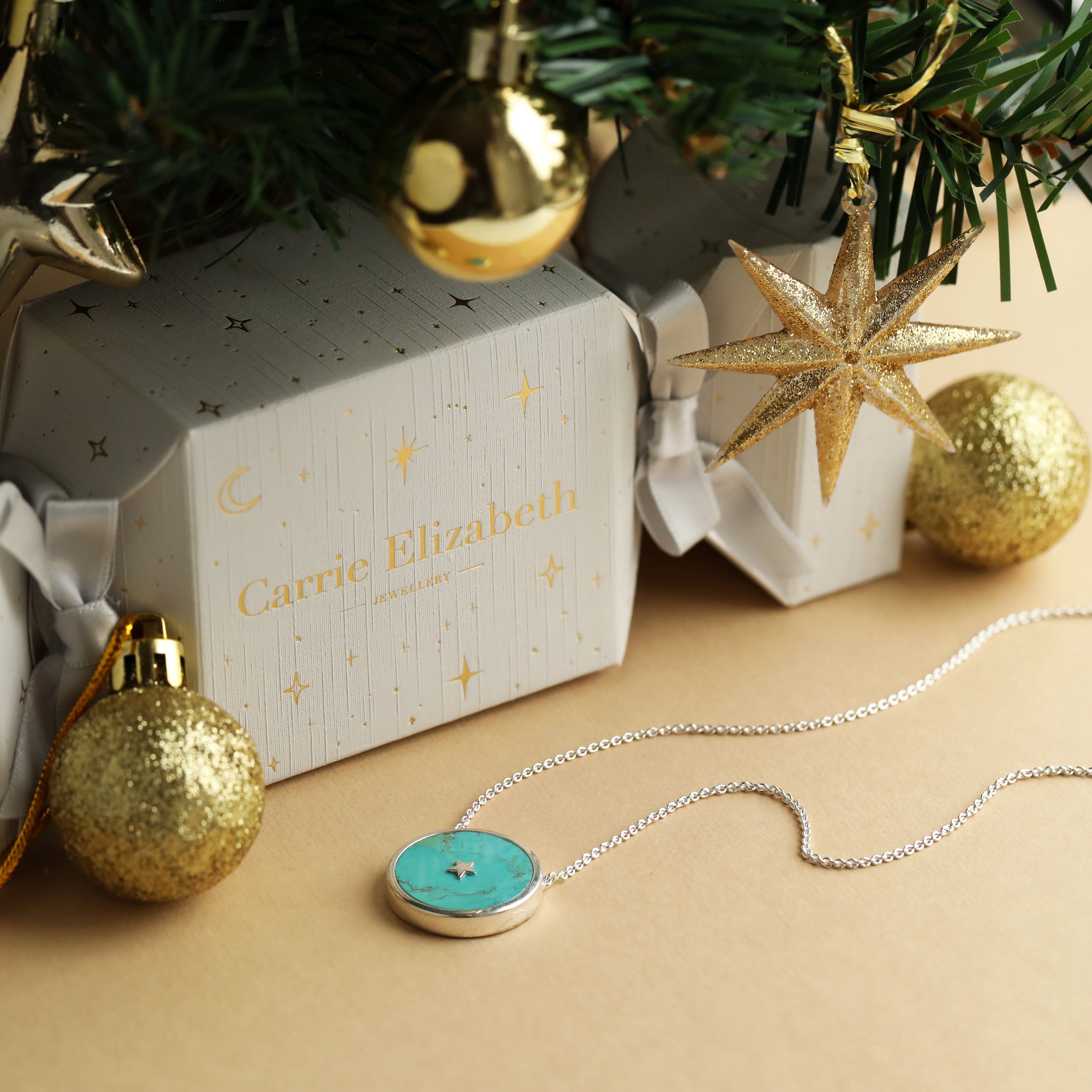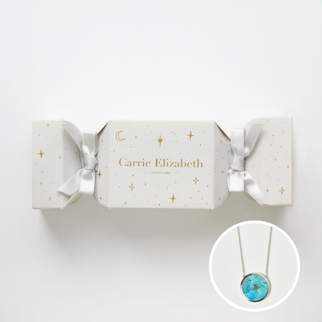 Nestled inside this exclusive Carrie Elizabeth cracker is one of our bestselling gemstone necklaces.