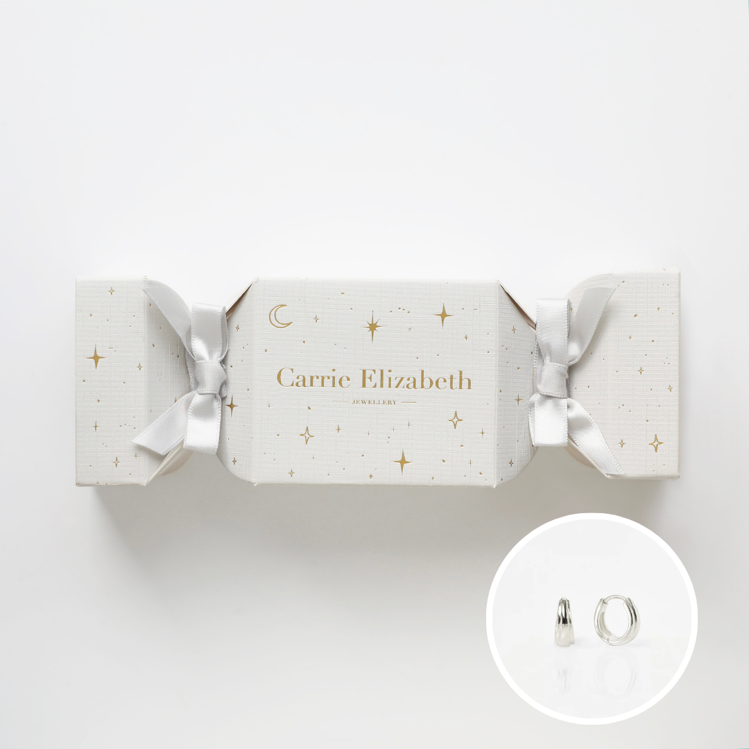 Nestled inside this exclusive Carrie Elizabeth cracker is a pair of bestselling hoop earrings.