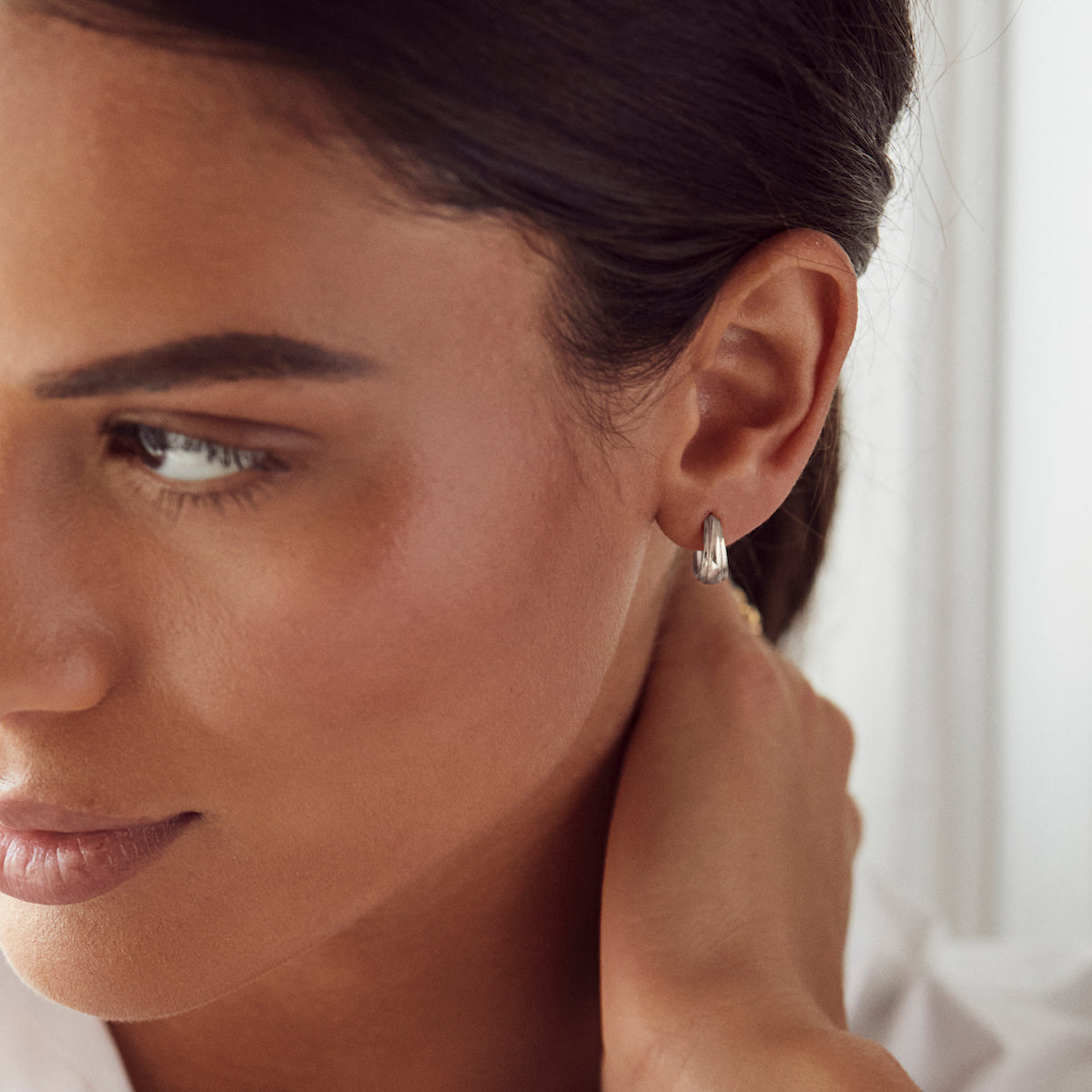 A classic gold hoop is a jewellery-wardrobe staple. We've given the style a vintage-inspired upgrade for extra impact. In perfectly polished sterling silver, the Vintage Huggie Hoop add a touch of effortless elegance to everyday looks.