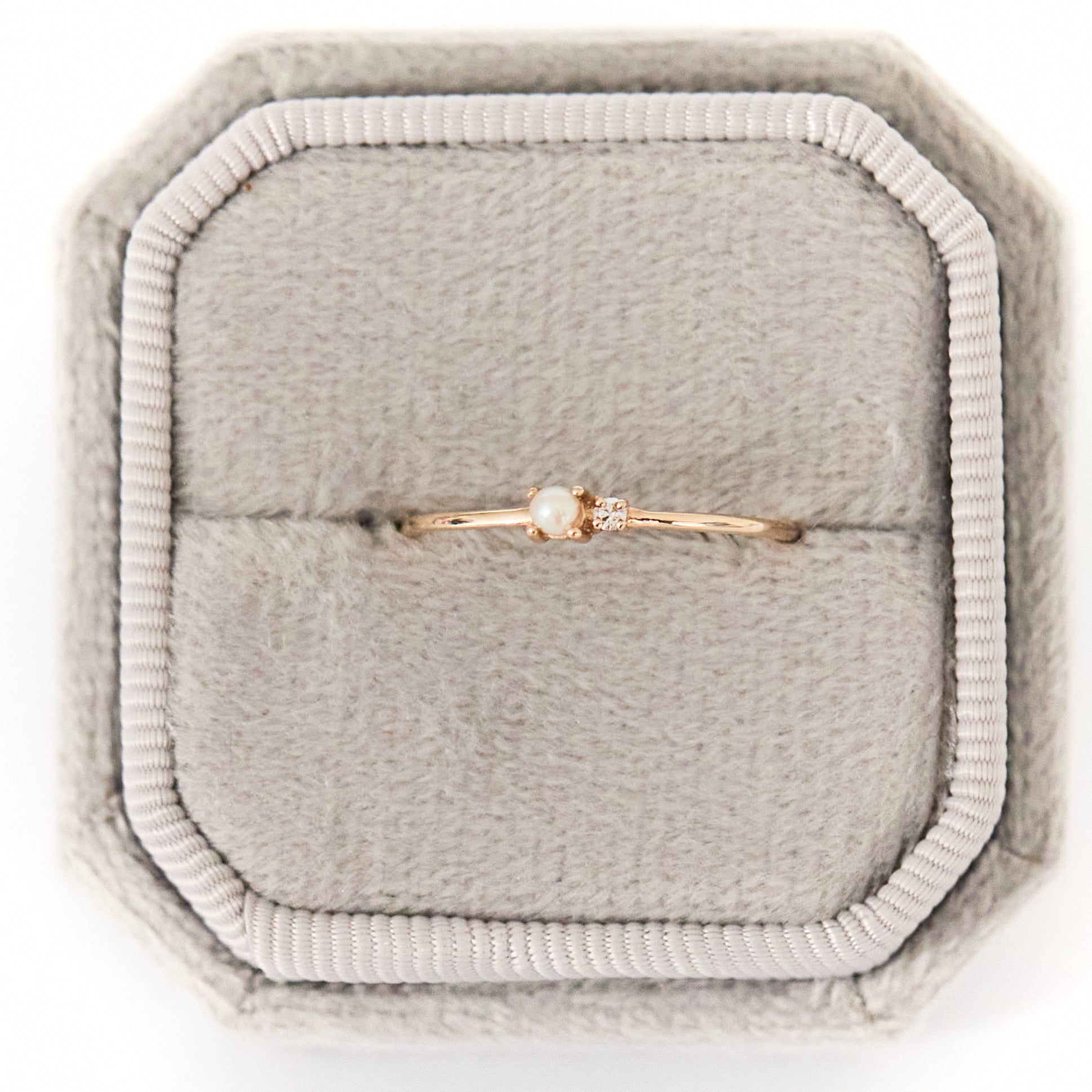 SAMPLE SALE- Dainty Pearl and Diamond Stacking Ring - UK Size N