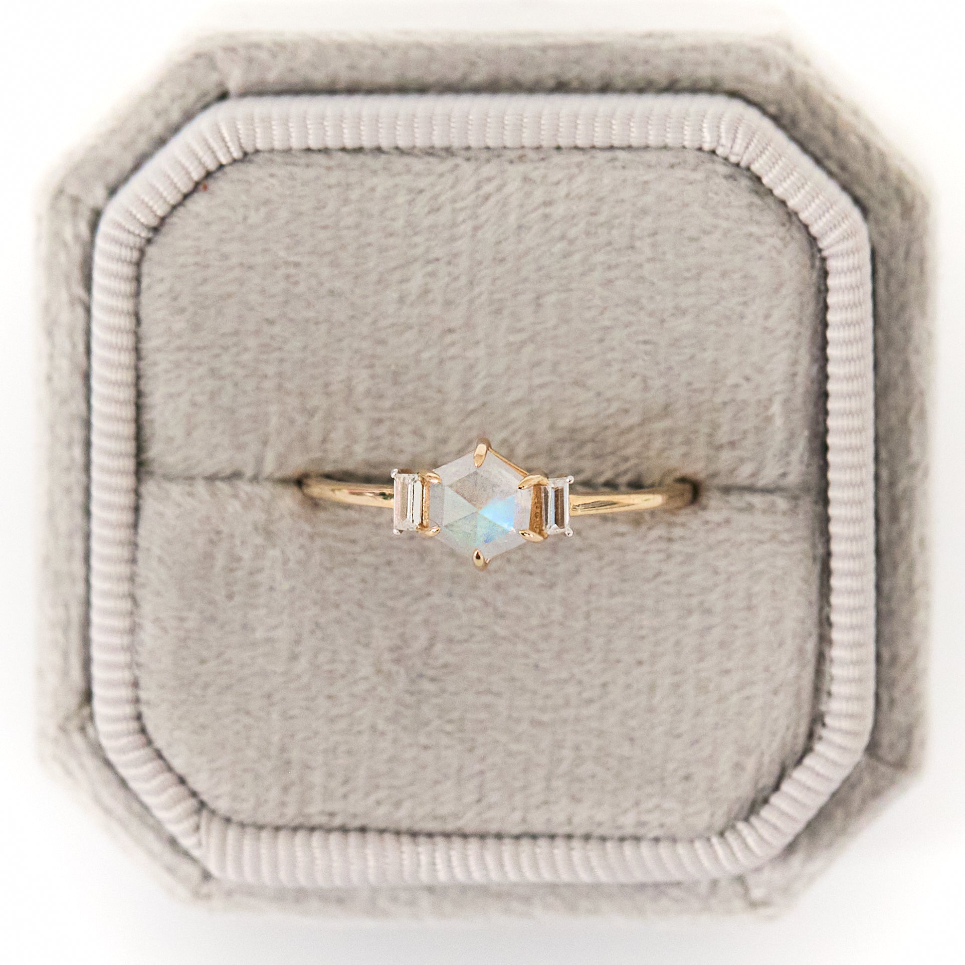 SAMPLE SALE- Hexagon Moonstone and Baguette Ring - UK Ring Size Q 1/2