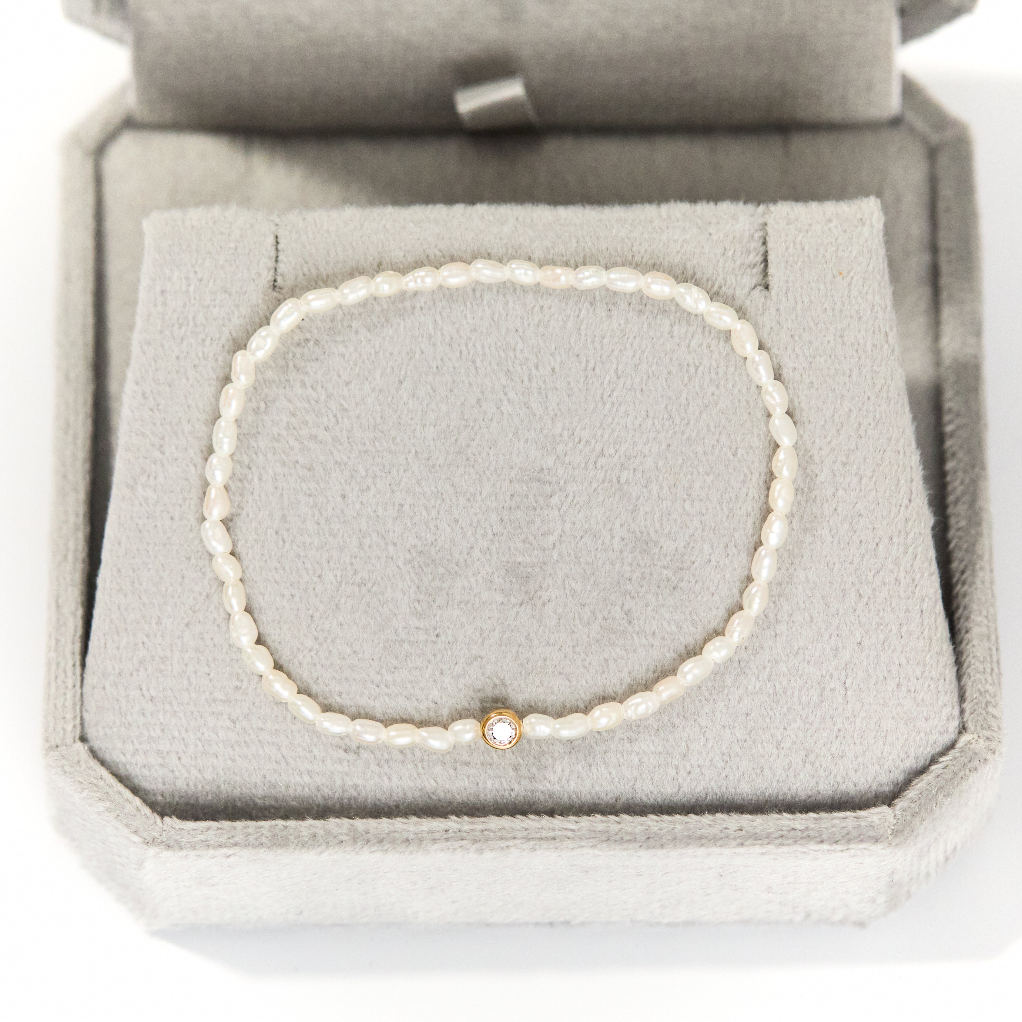 SAMPLE SALE- Solitaire Lab Grown Diamond Pearl Bracelet