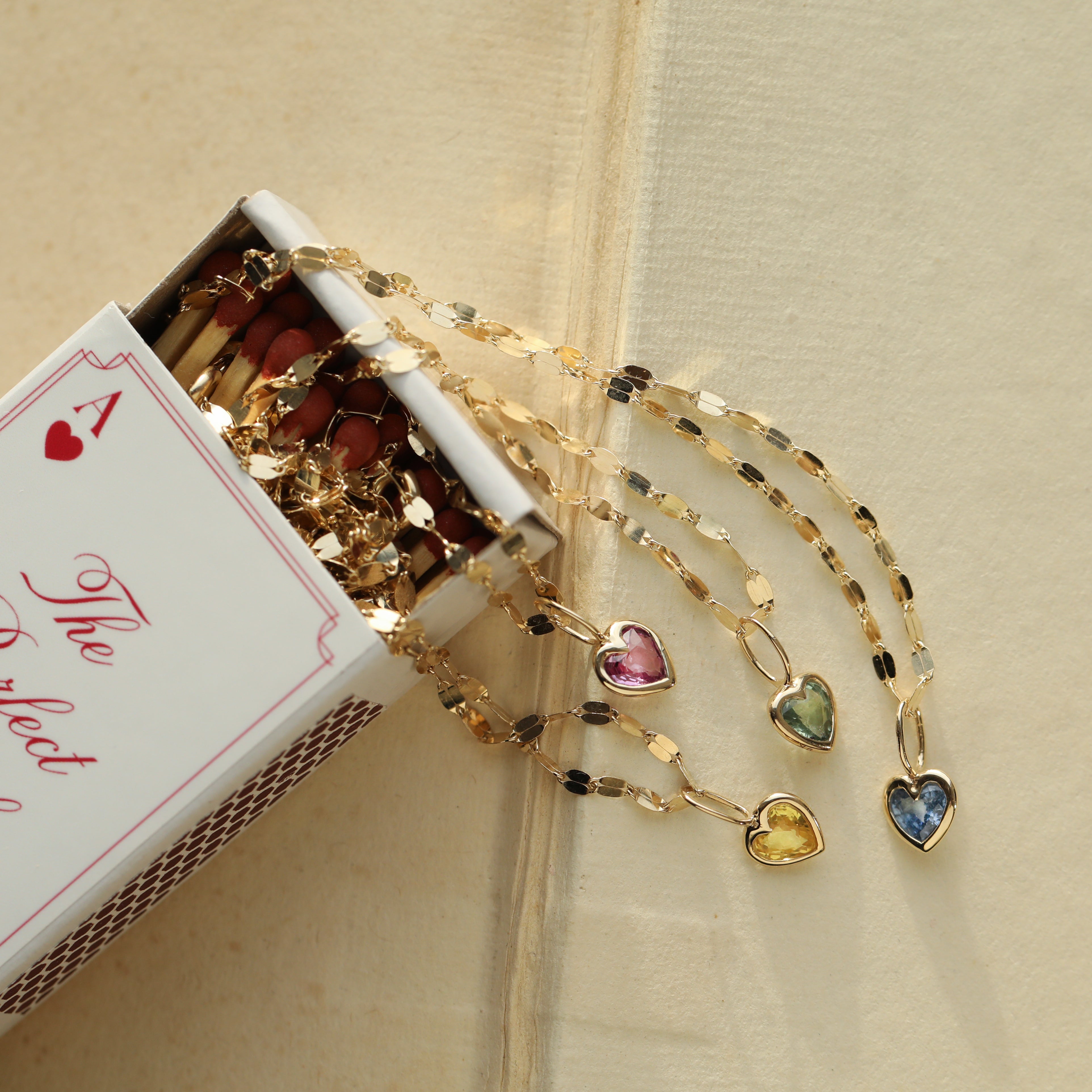 We’ve sourced a limited number of these incredible heart-cut sapphires. So if you love this necklace, don’t wait to make it yours! Each stone has a subtly different shade, and once they’re gone, they’re really gone — making every heart feel all the more special.