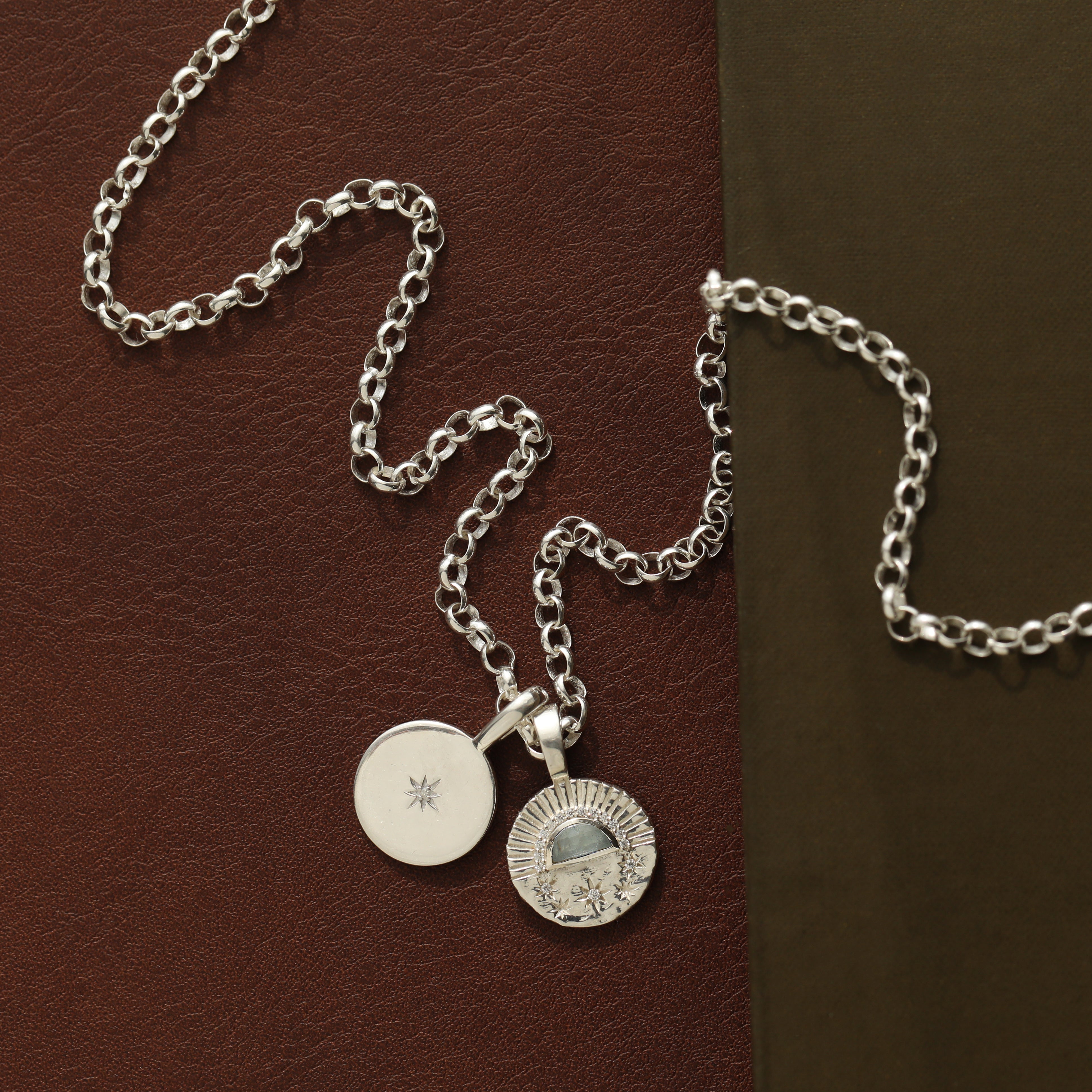 On the other, a polished face has space to engrave a monogram of up to three initials, turning your pendant into a uniquely personal talisman. Add to the chain of your choice - we love it paired with the Vintage, Rolo, Sterling Silver and Sunray chains.