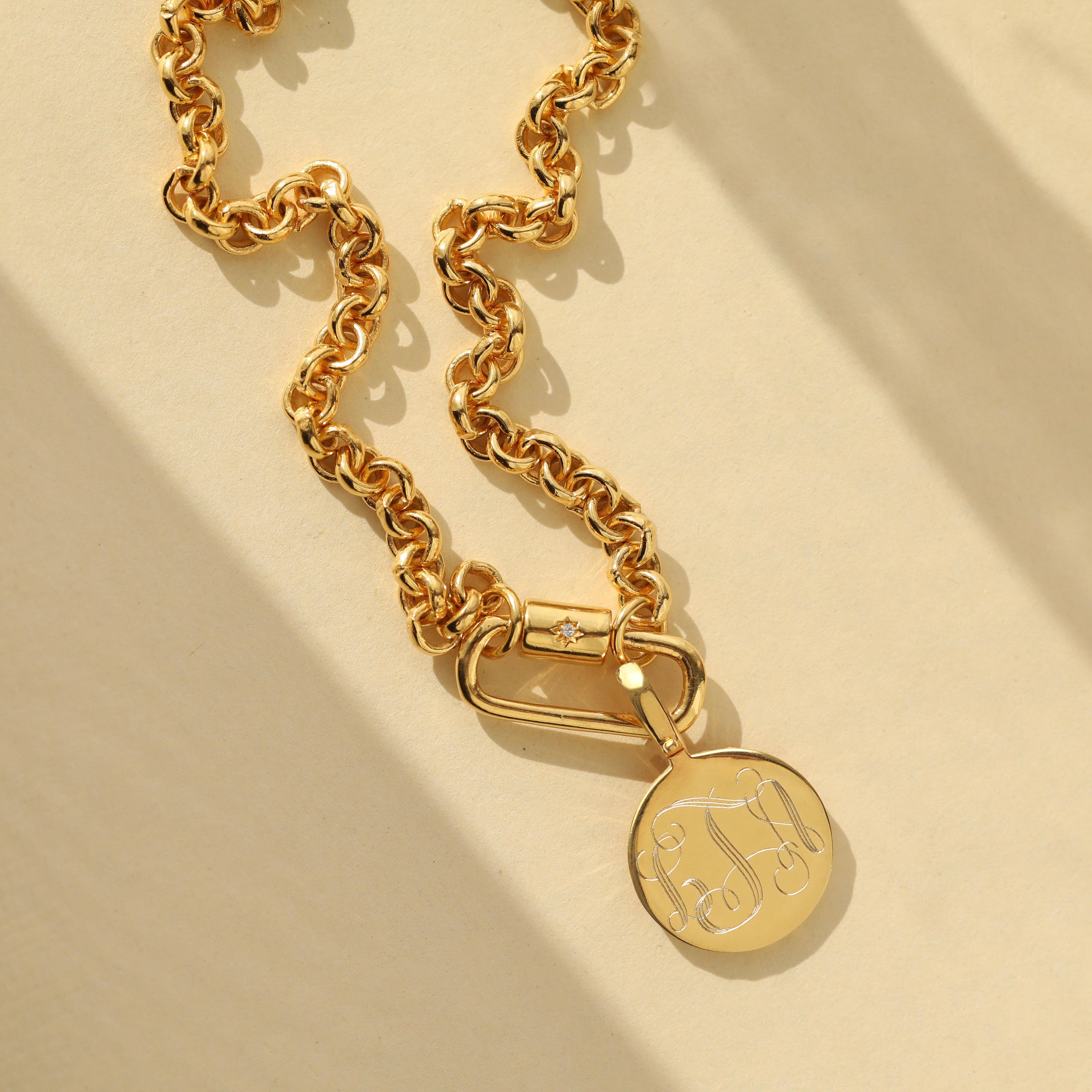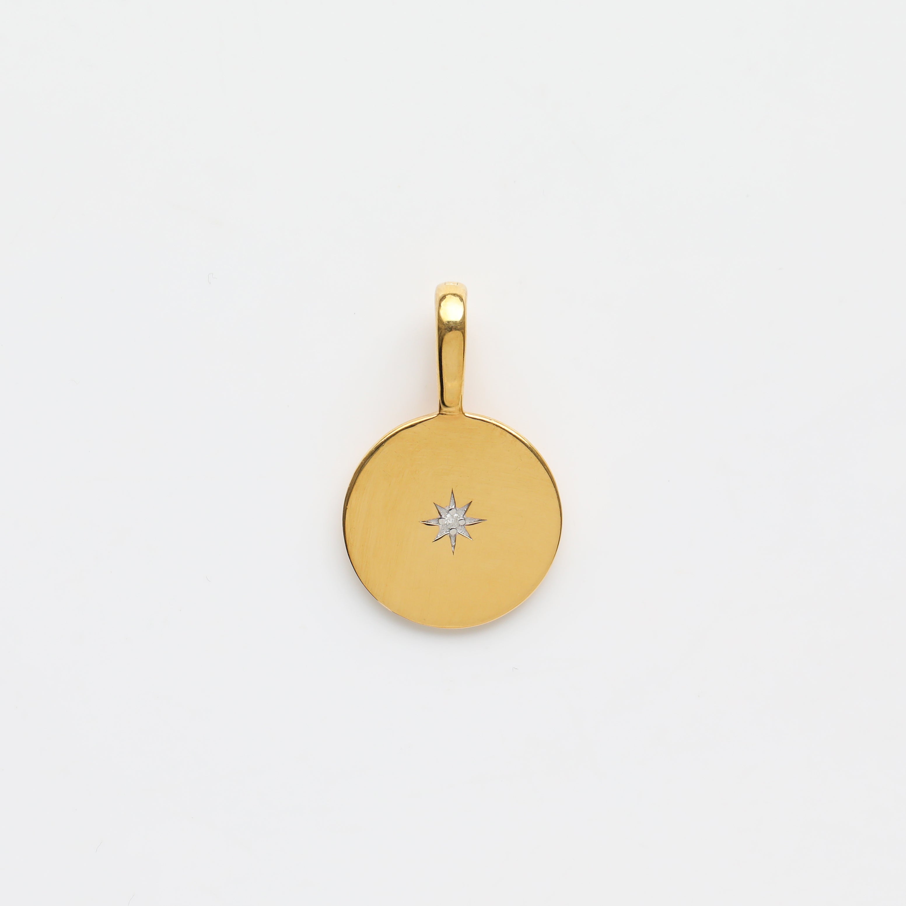 A symbol of strength and everlasting love, our Heirloom Diamond Star Set Coin tells a story of the things or people you love best. The gold vermeil coin pendant is rich with gorgeous detail. One one side, a tiny diamond glitters in a vintage-star star setting. On the other, a polished face has space to engrave a monogram of up to three initials, turning your pendant into a uniquely personal talisman. Teamed with our vintage inspired chain, its the perfect way to start to tell your story.