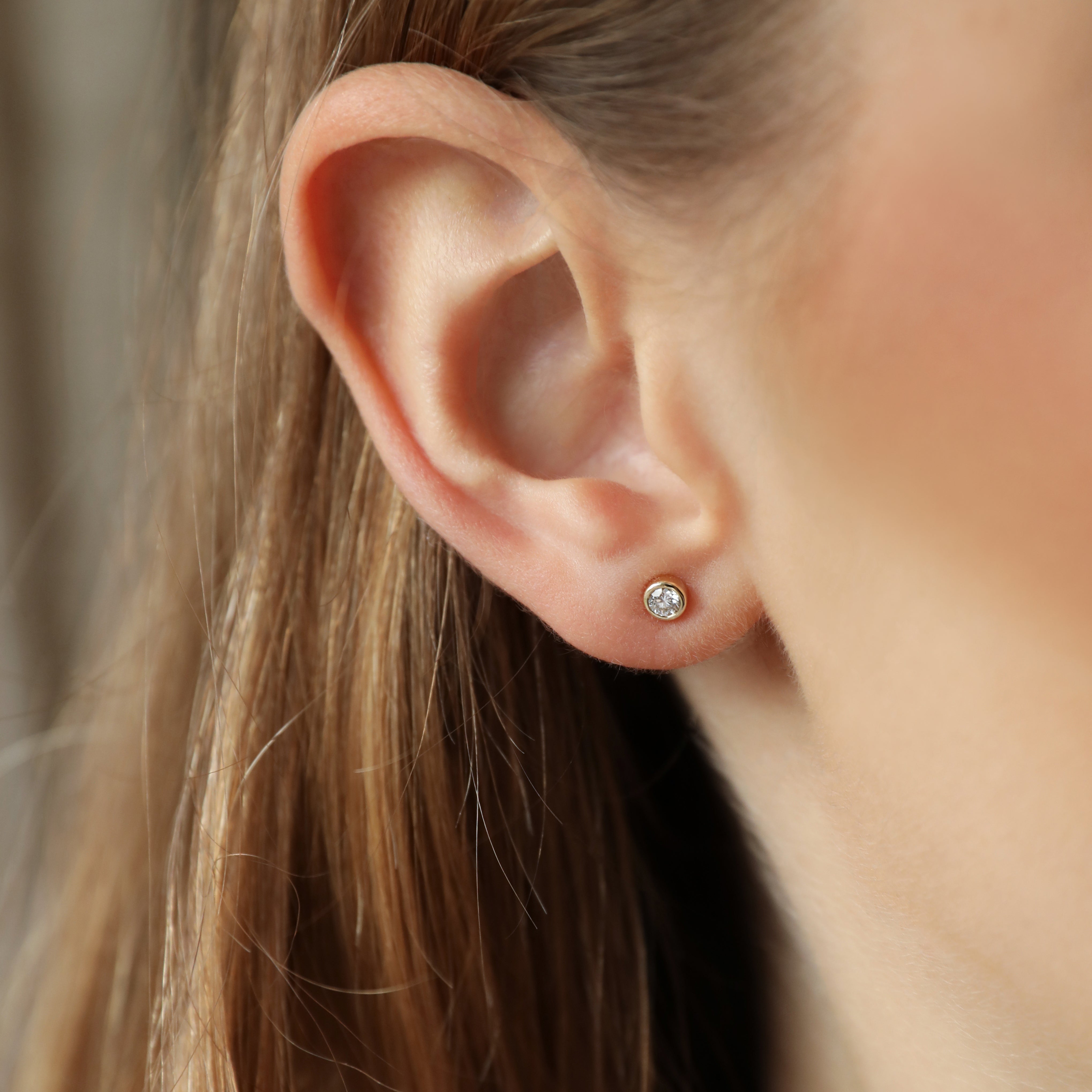 Bezel Set Diamond Stud Earrings