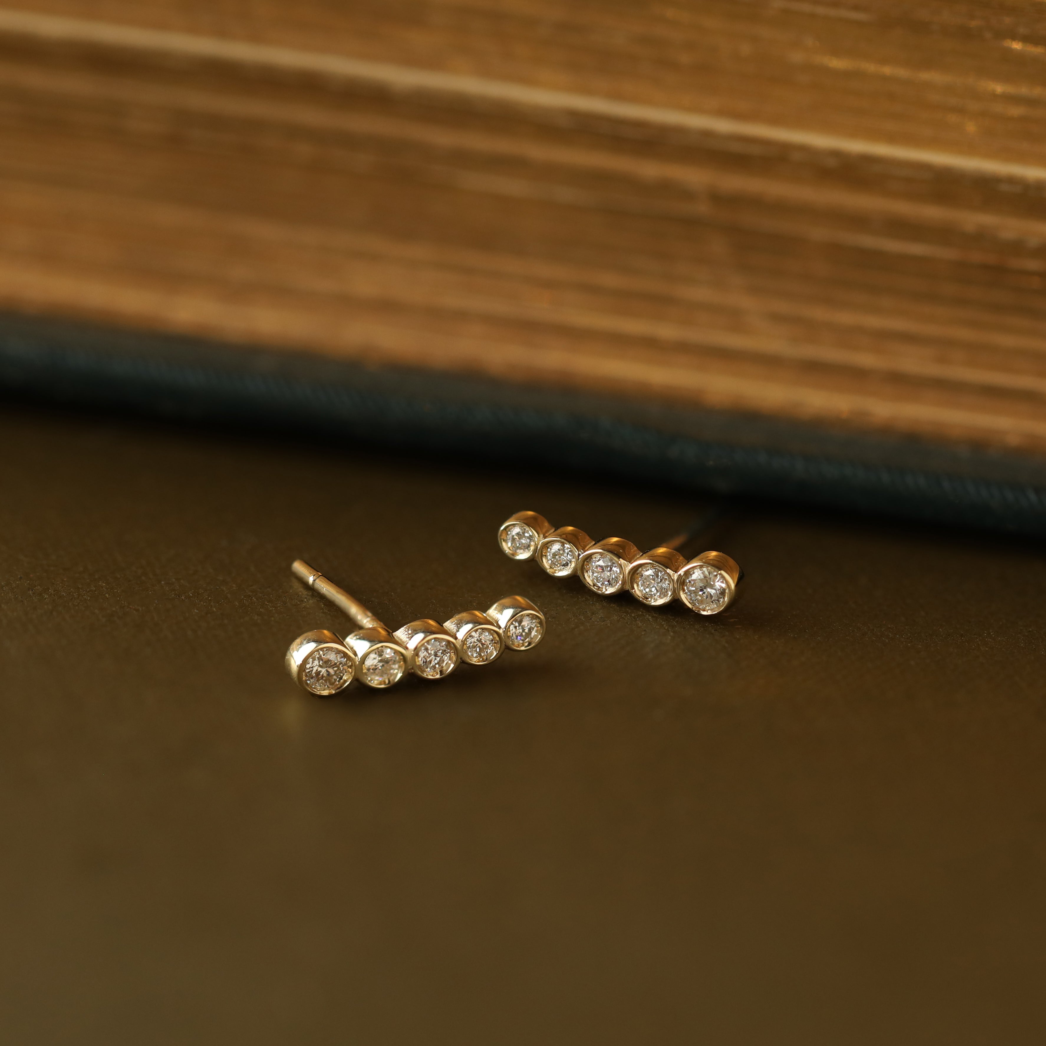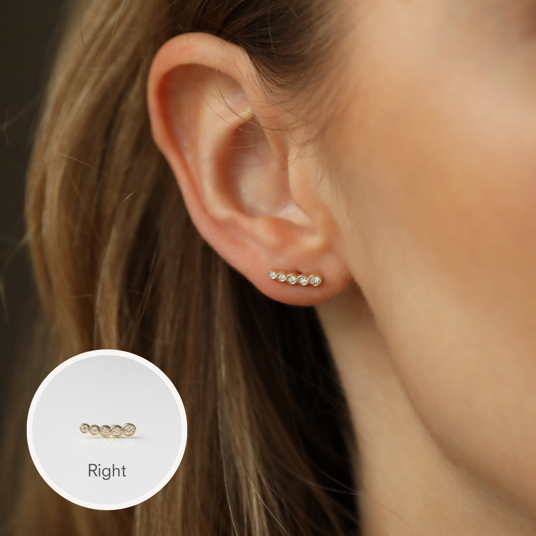 The Diamond Climber Earring is both delicate and impactful. Designed to climb up or along the contours of the ear, diamond-set detail adds beautiful sparkle and a little luxe... Wear alone or add into a curation for an individual look. Crafted in 9k solid gold, you can wear this baby day in, day out, forever!
