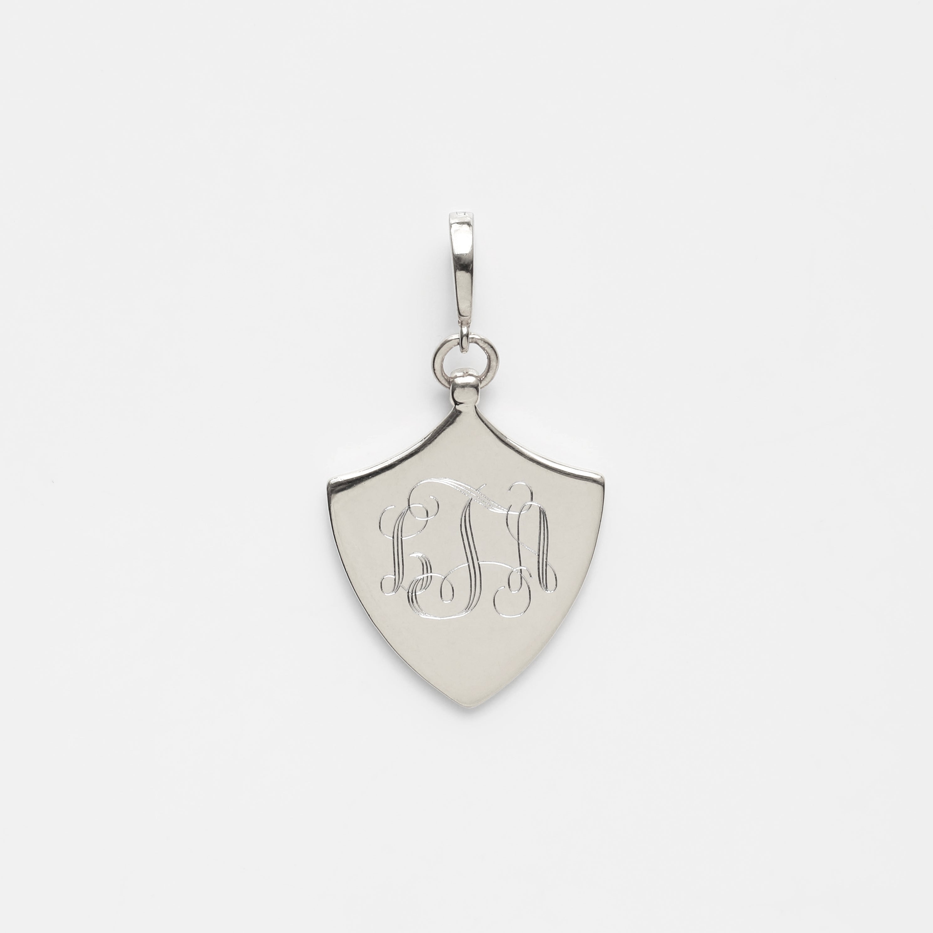 The sterling silver Protection Shield Pendant draws on timeless symbolism. Representing strength and protection, it nods to the classic family crest motif.