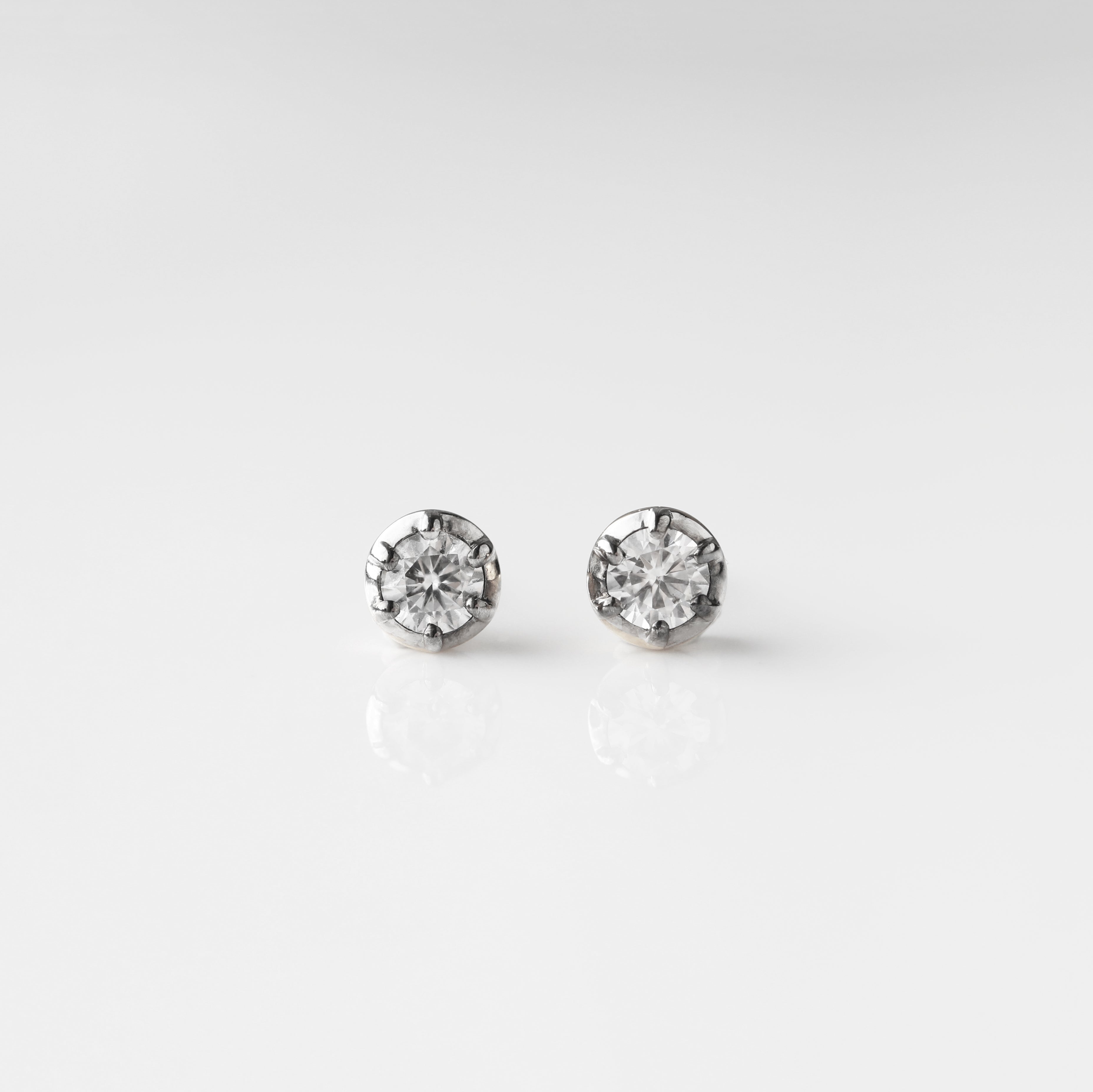 With a sparkling moissanite in a Georgian-style button-back setting, these stud earrings feel like the dream auction-house or antique market find! Endlessly versatile, they have the timeless appeal of a diamond solitaire studs, but with a unique personality all of their own.