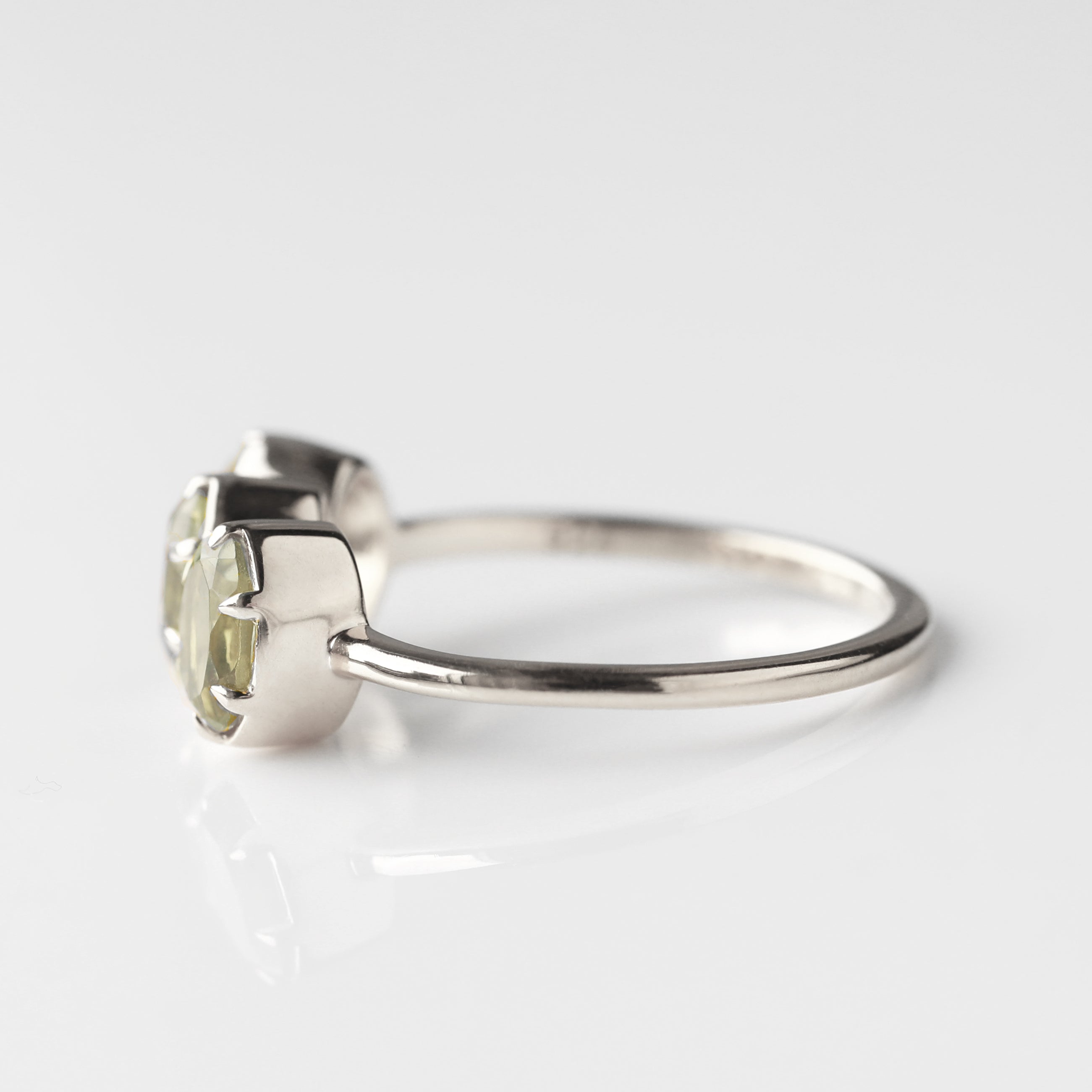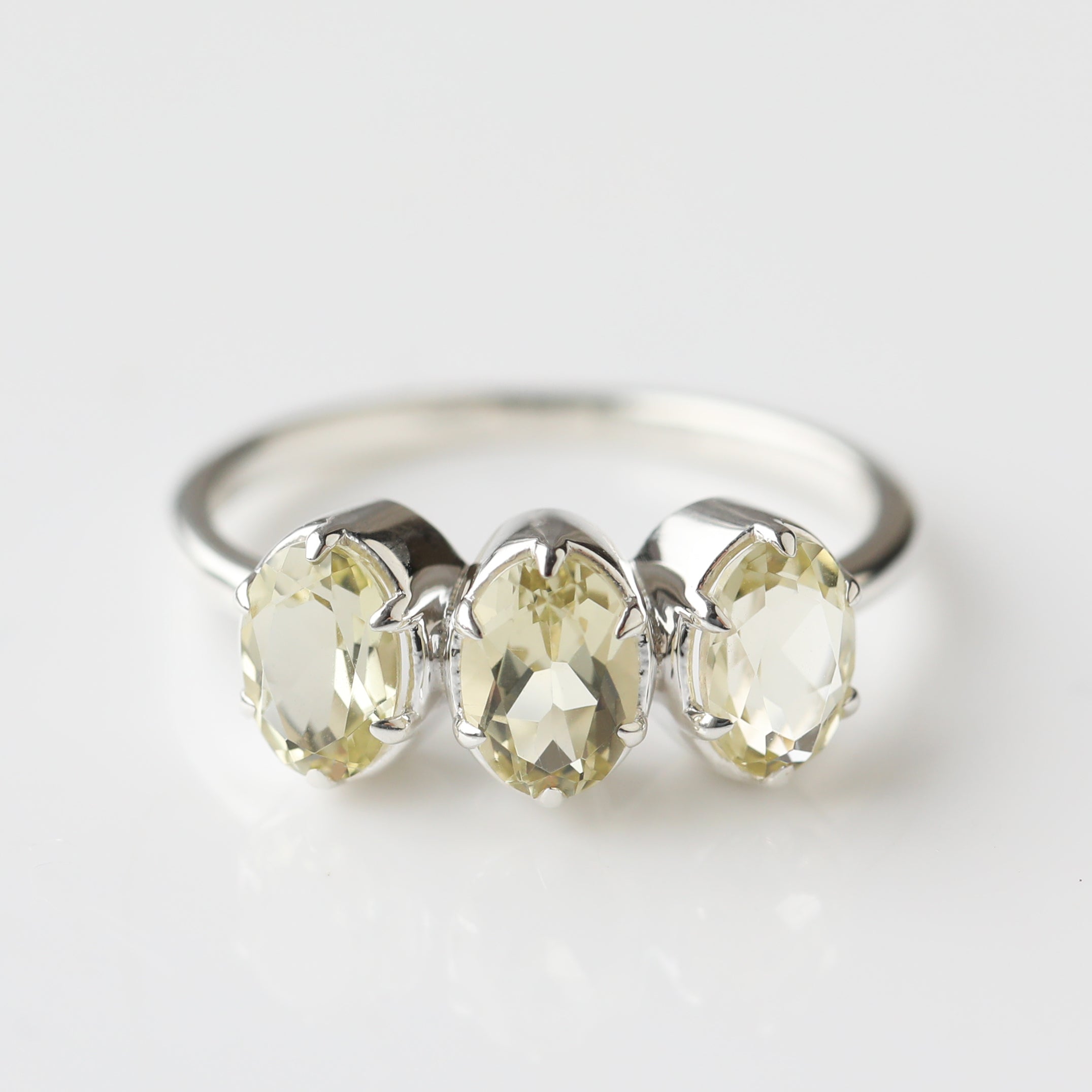 Three faceted olive quartz gemstones represent your past, present and future, for a trilogy design that’s both symbolic and striking.