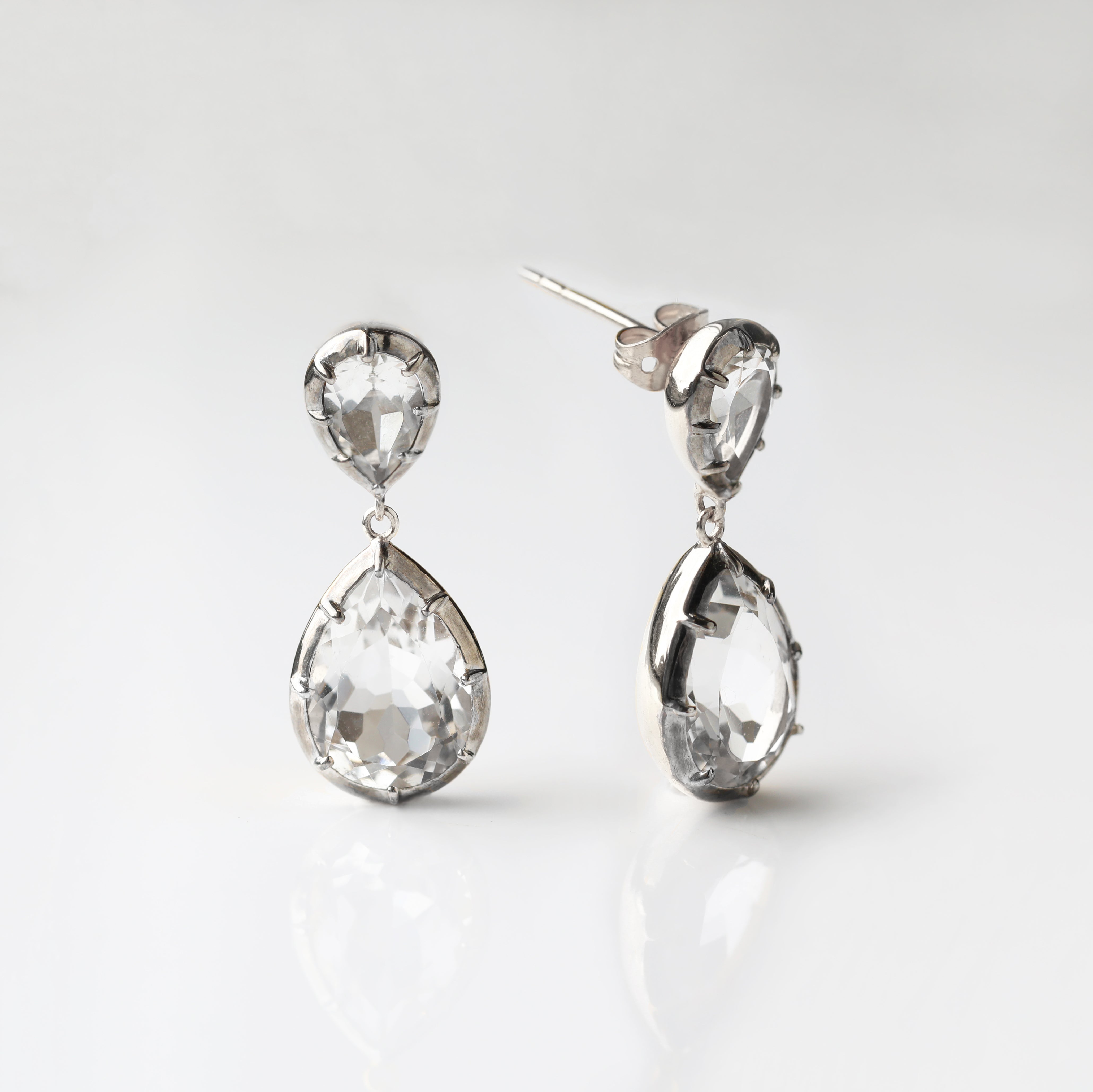 Inspired by antique settings, the silver plated Chapters Statement Georgian Drop Earrings bring vintage glamour into the modern day. Glittering with white topaz in faceted pear cuts, they are designed for decadence and celebration… and any moment when you want your light to shine.