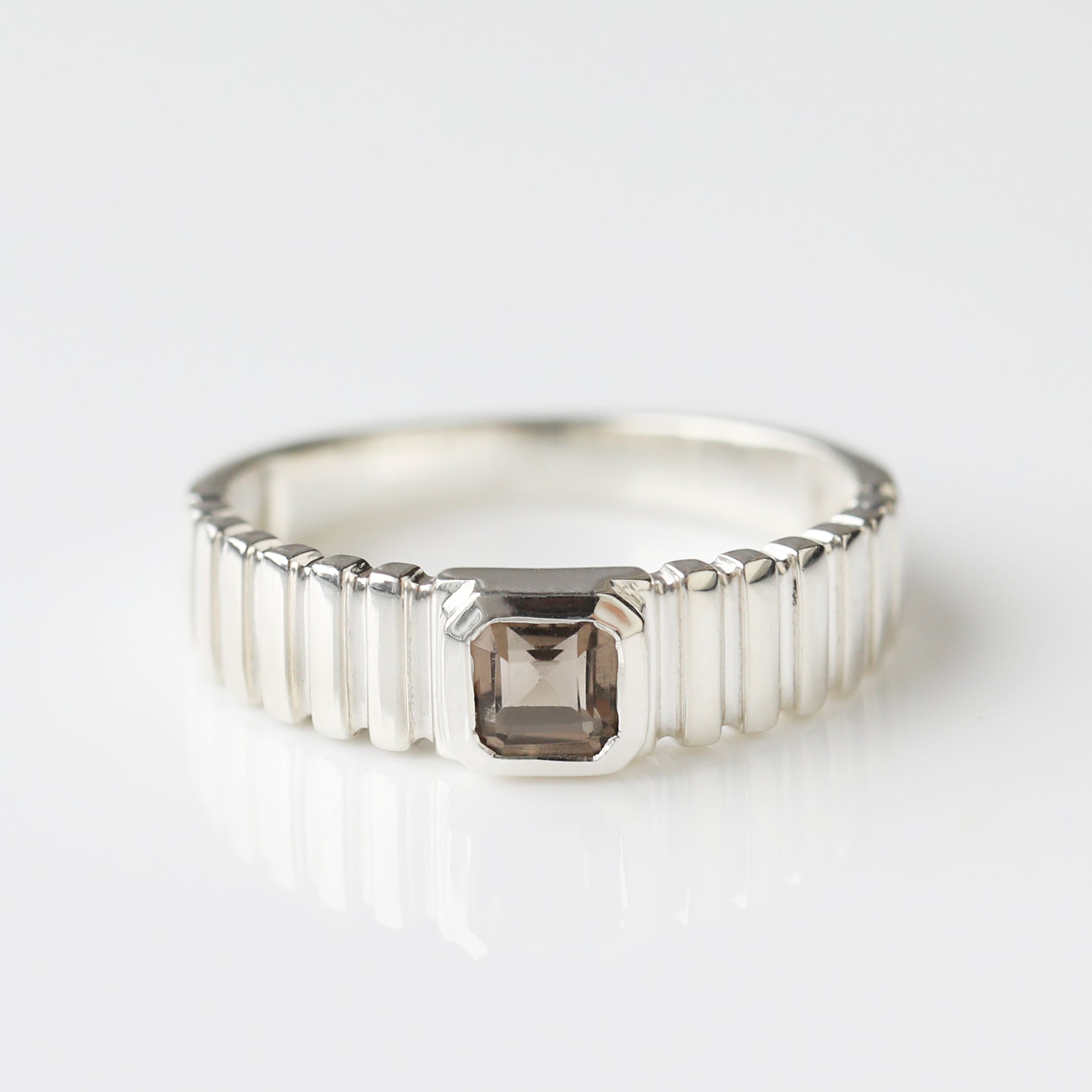 With its fluted band and asscher-cut smoky quartz, the sterling silver Chapters Vintage Stacking Ring feels like a dream antique jewellery find, with a modern edge.
