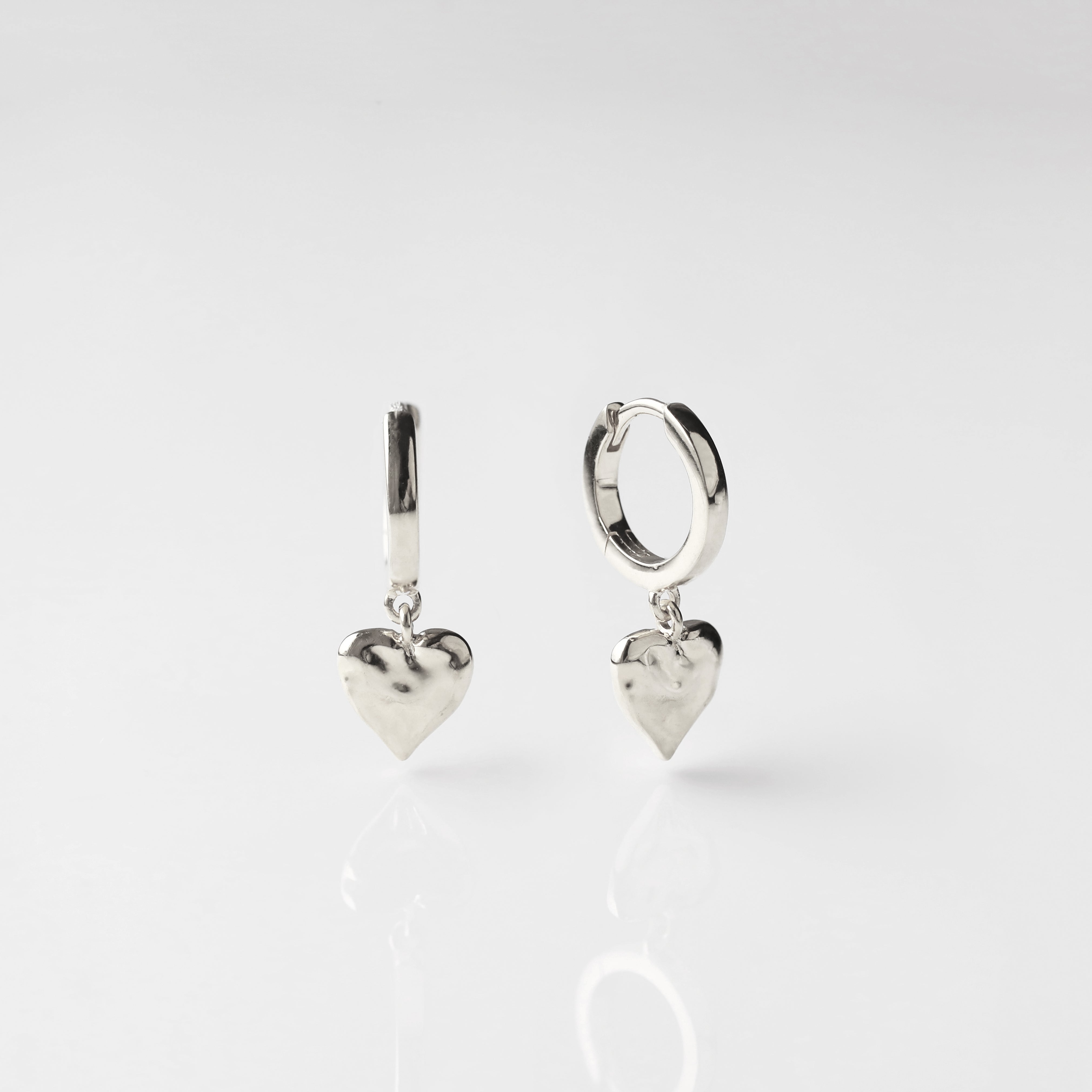 With softly hammered heart charms suspended from classic huggie hoops, the Loveheart Drop Earrings are a timeless expression of love with a modern, bohemian touch.
