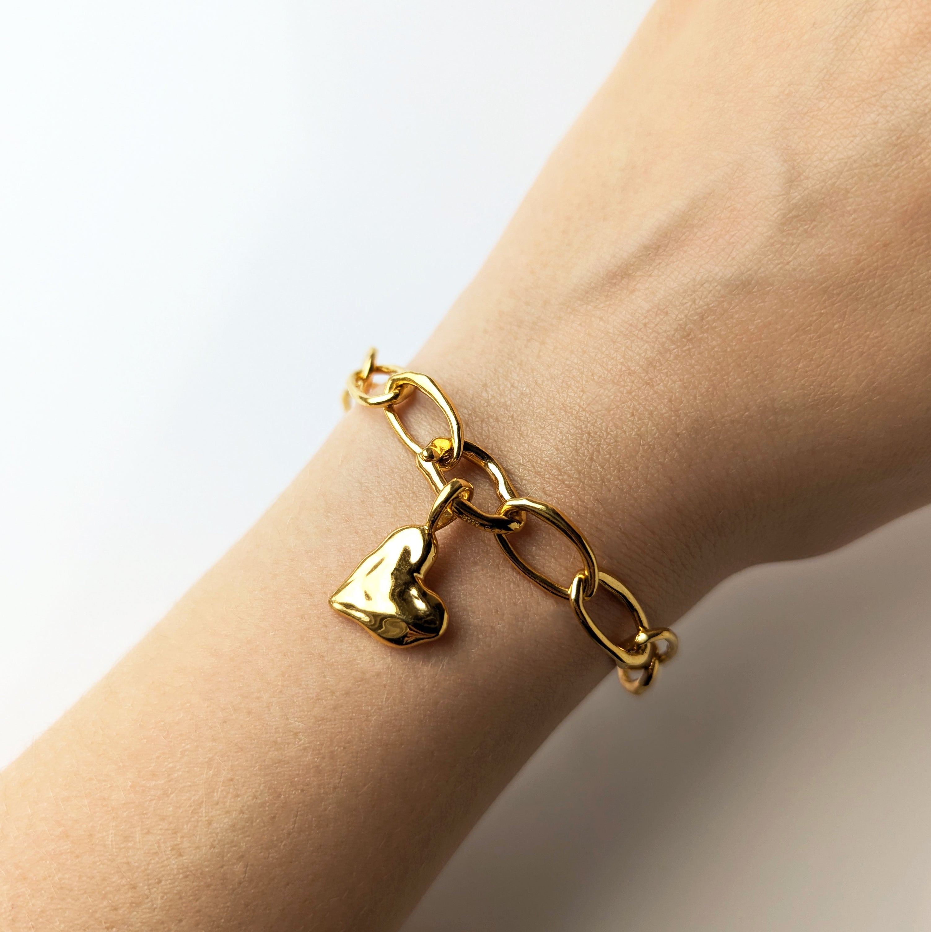 Molten Link Chain Bracelet with Heartbeat Pendant