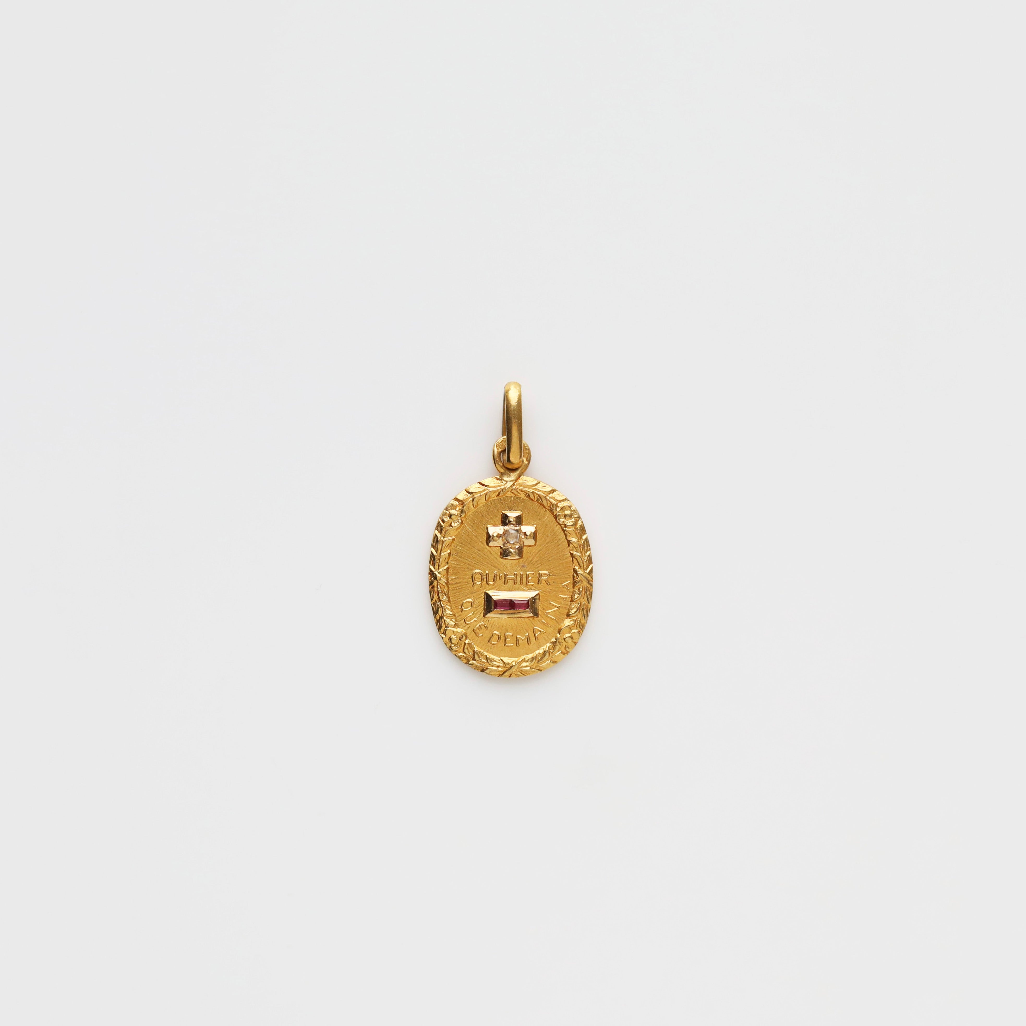 Each vintage Augis 1920's love token holds the powerful quote 'Qu'hier Que Demain', inspired by a beautiful French poem by Rosemonde Gérard and means "I love you more than yesterday and less than tomorrow". A romantic and meaningful proclamation of love, this beautiful pendant is the perfect piece to add to your favourite chain and looks gorgeous clustered with other sentimental charms.