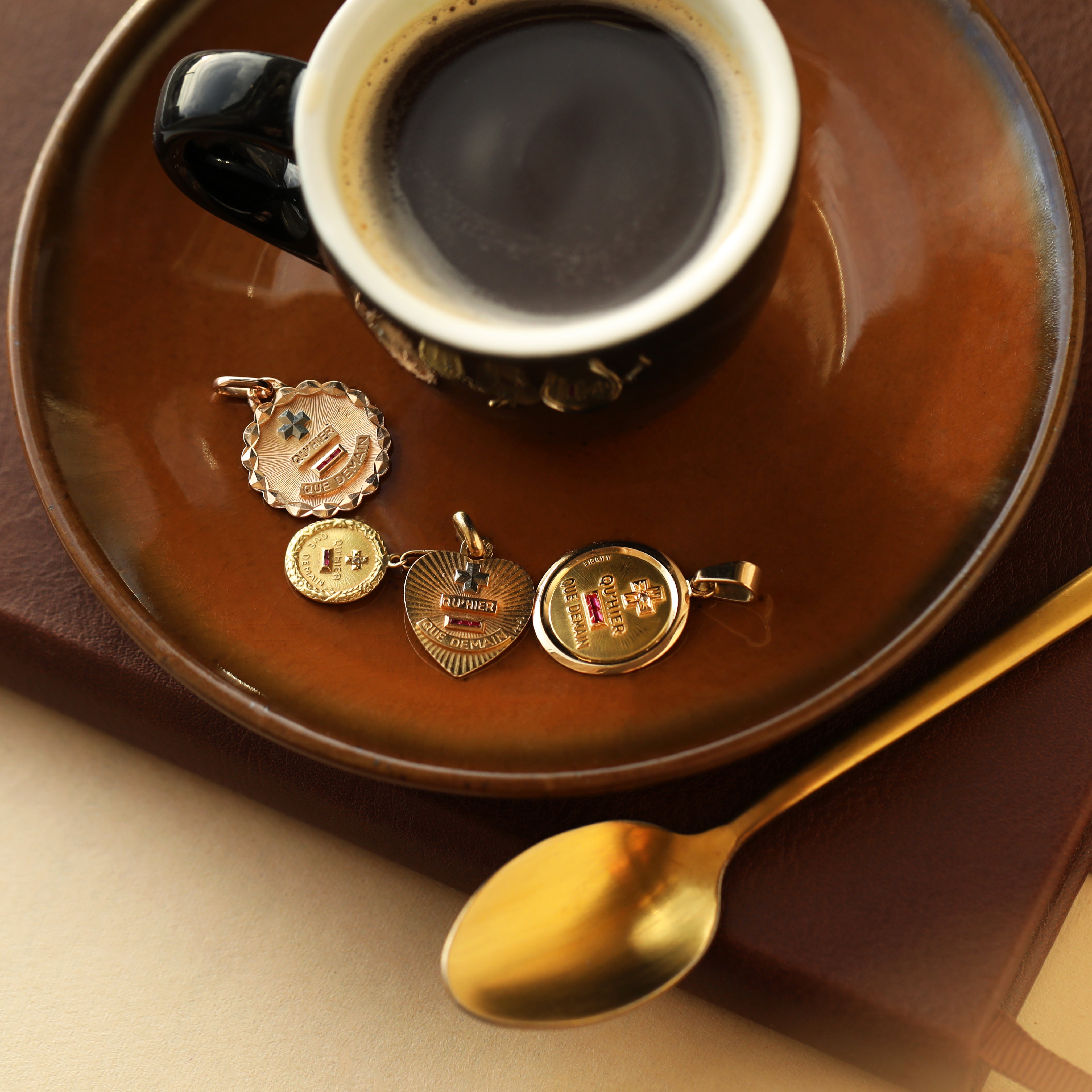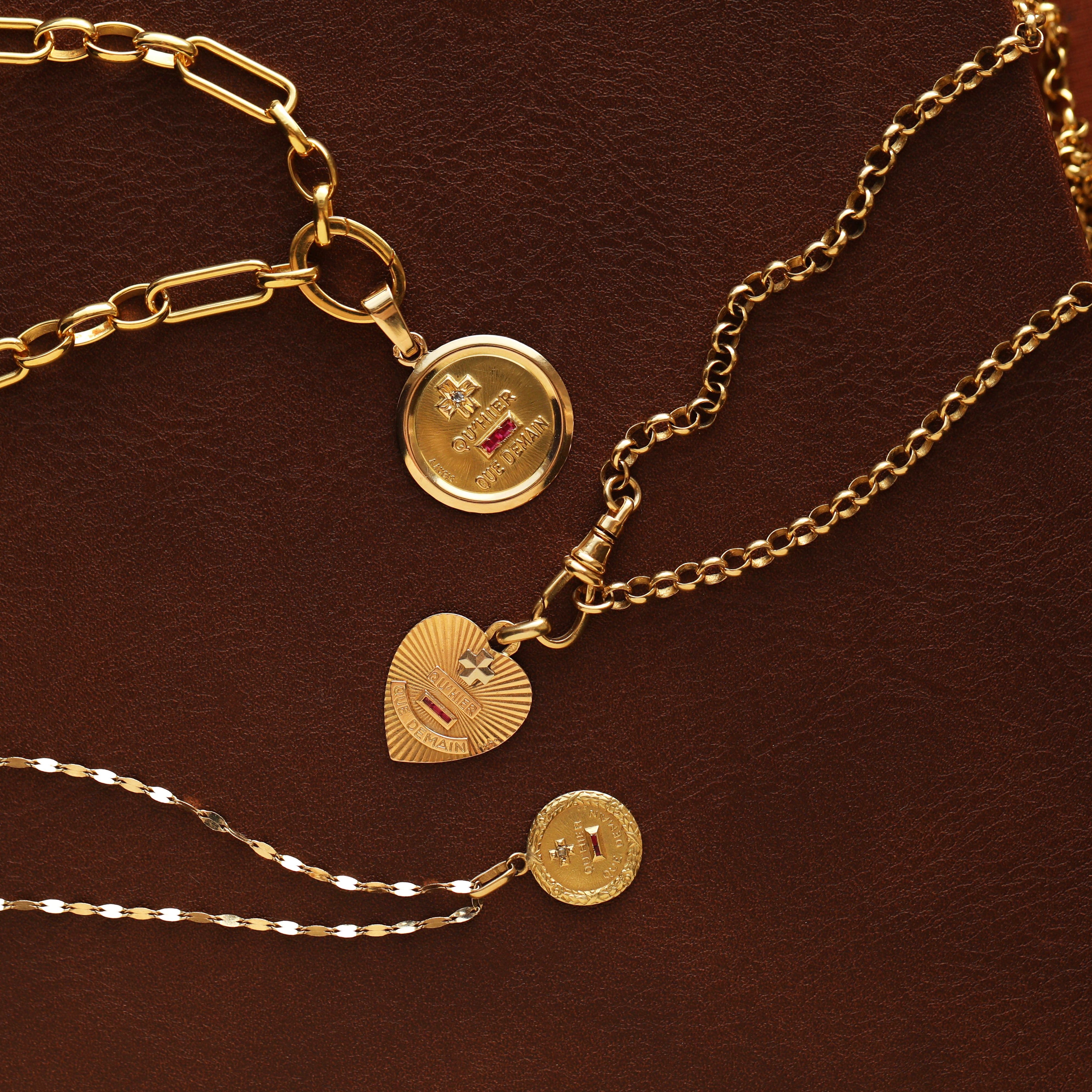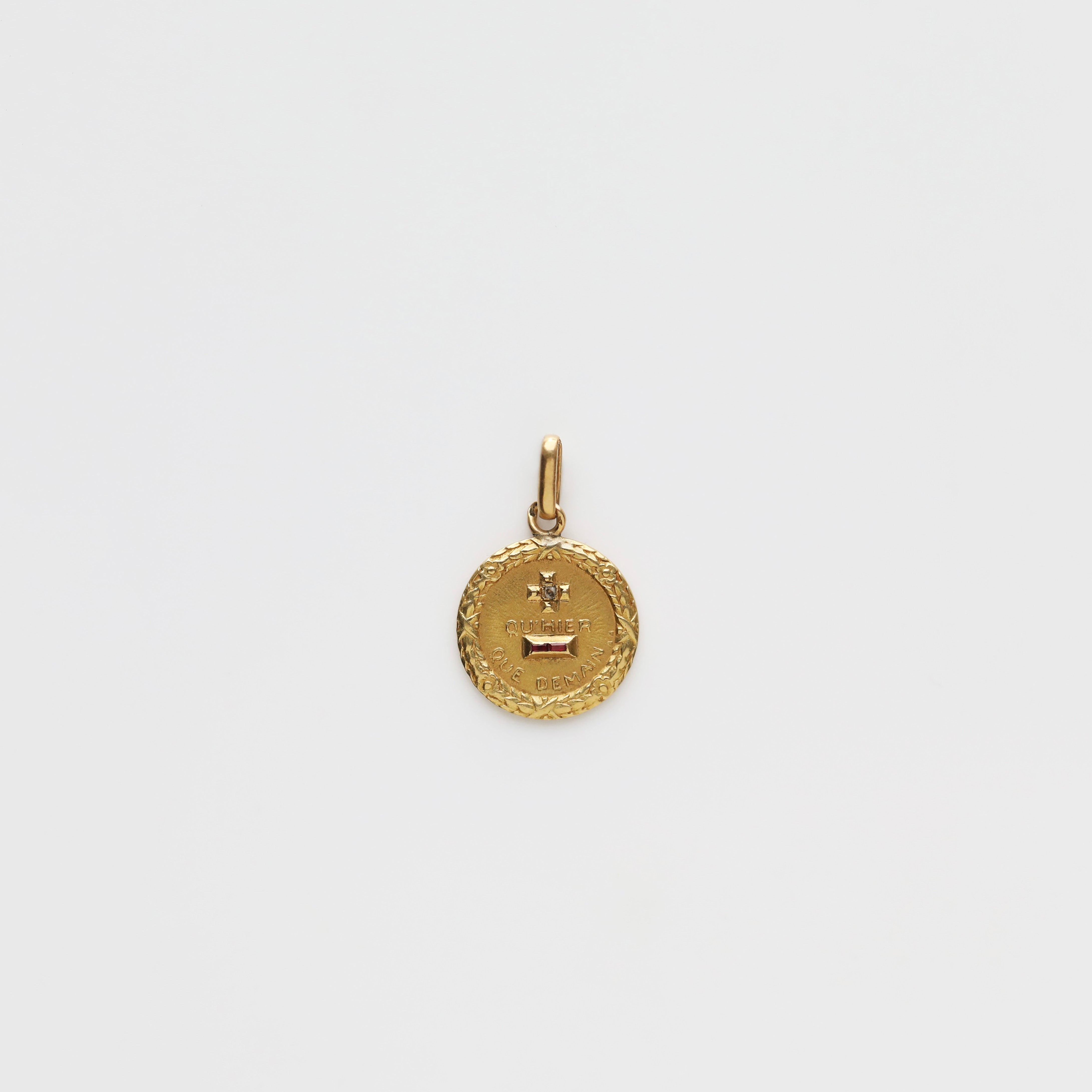 Vintage Augis 18k Solid Yellow Gold Diamond and Ruby Love Token