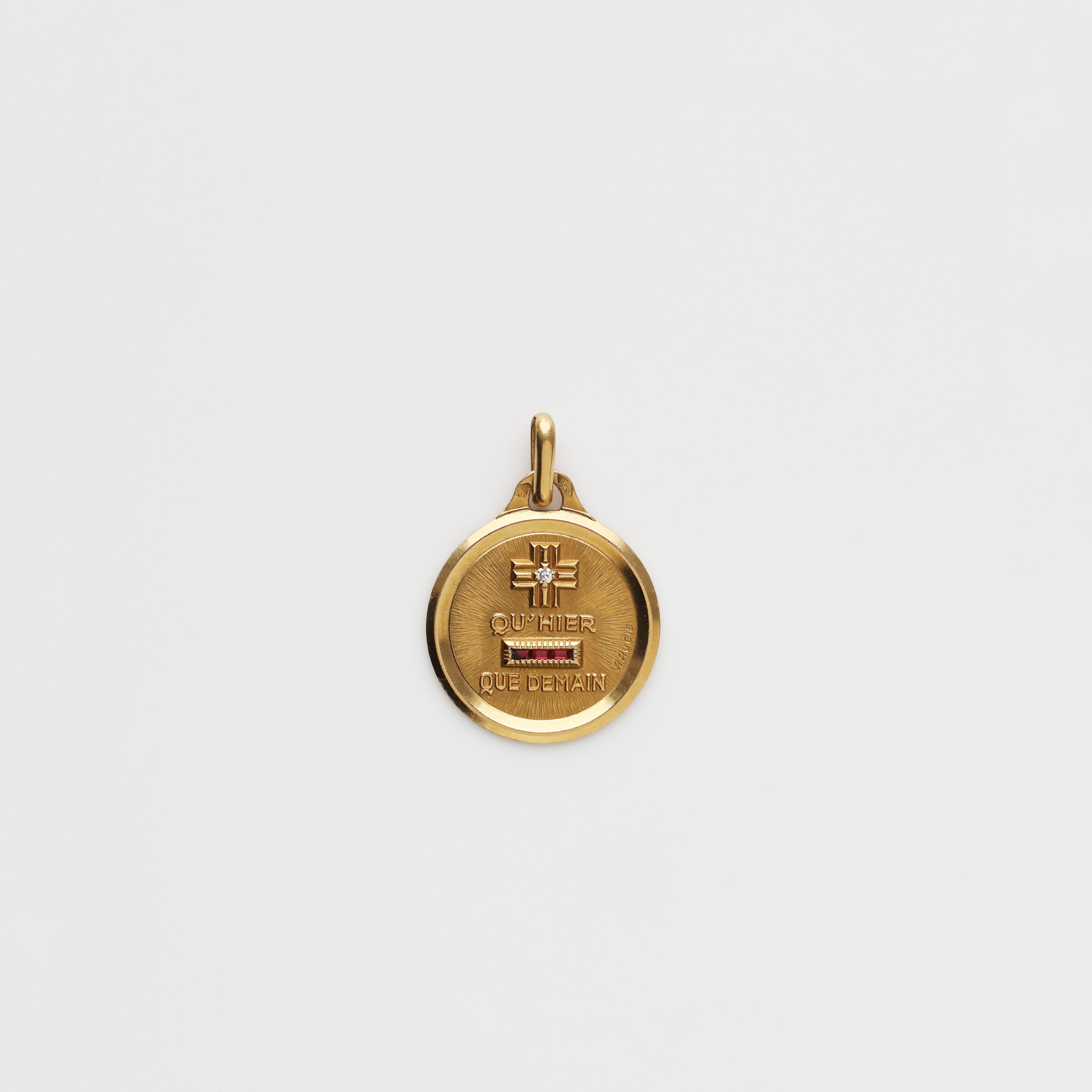 Each vintage Augis 1920's love token holds the powerful quote 'Qu'hier Que Demain', inspired by a beautiful French poem by Rosemonde Gérard and means "I love you more than yesterday and less than tomorrow". A romantic and meaningful proclamation of love, this beautiful pendant is the perfect piece to add to your favourite chain and looks gorgeous clustered with other sentimental charms.