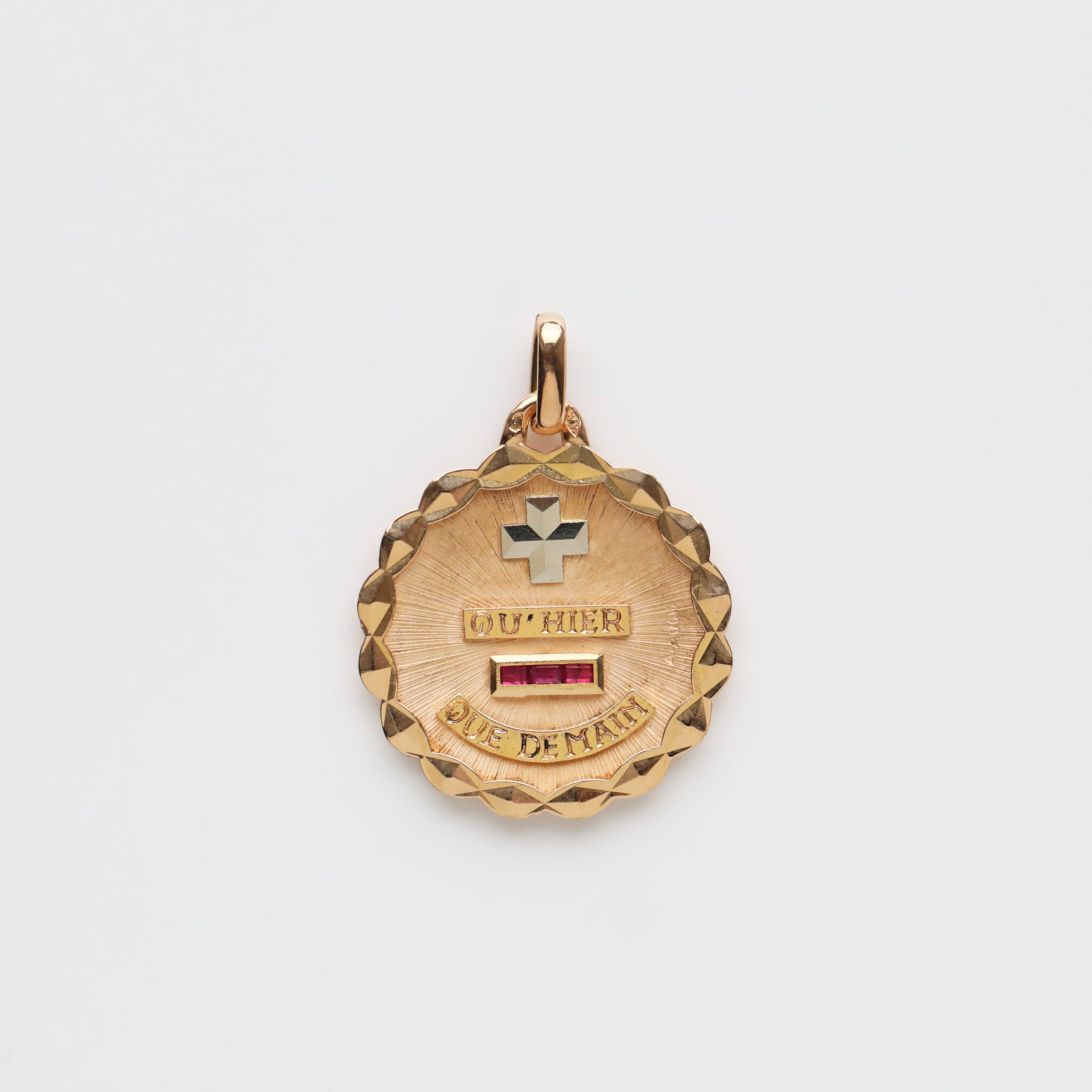 Each vintage Augis 1920's love token holds the powerful quote 'Qu'hier Que Demain', inspired by a beautiful French poem by Rosemonde Gérard and means "I love you more than yesterday and less than tomorrow". A romantic and meaningful proclamation of love, this beautiful pendant is the perfect piece to add to your favourite chain and looks gorgeous clustered with other sentimental charms.