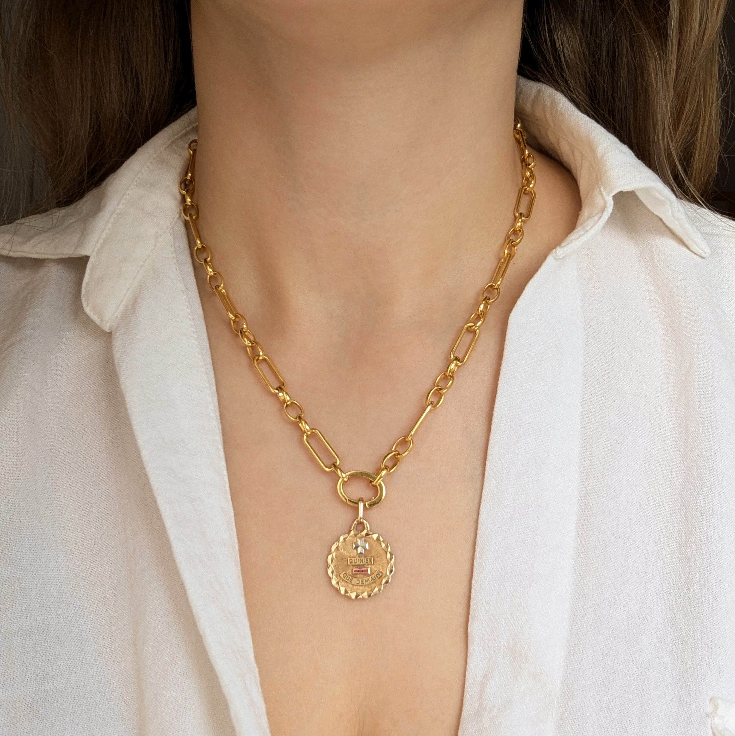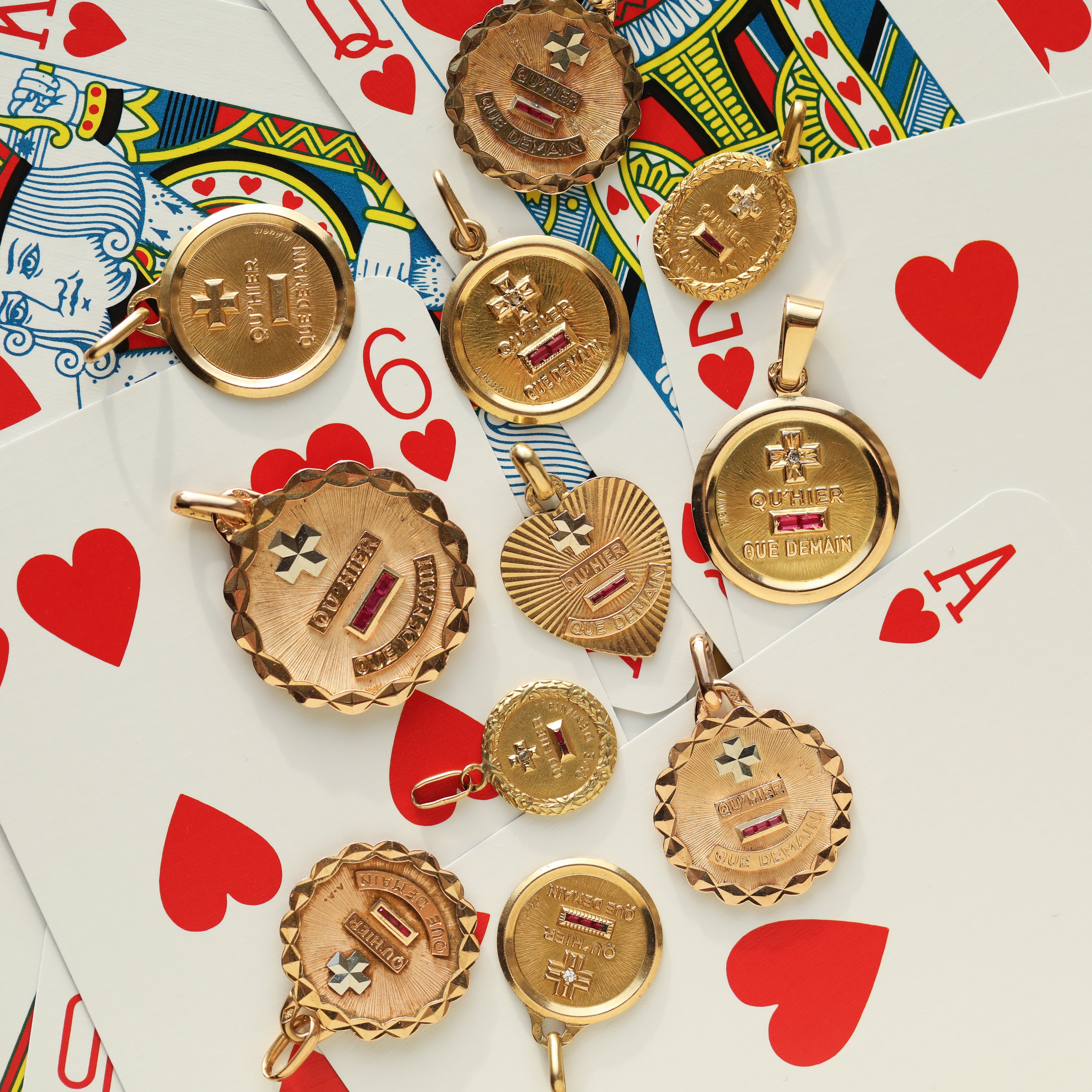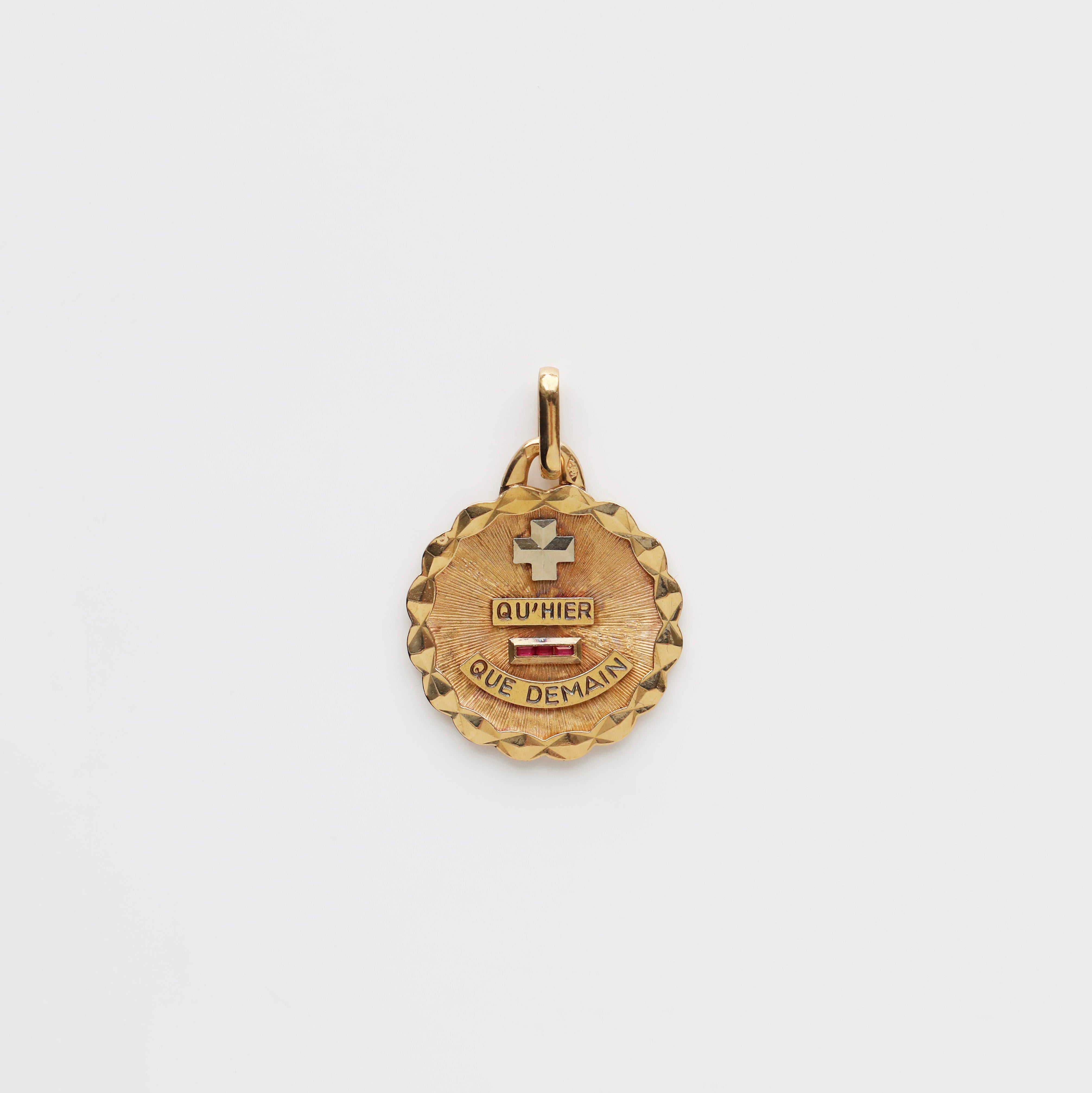 Vintage Augis 18k Solid Yellow Gold Ruby Love Token
