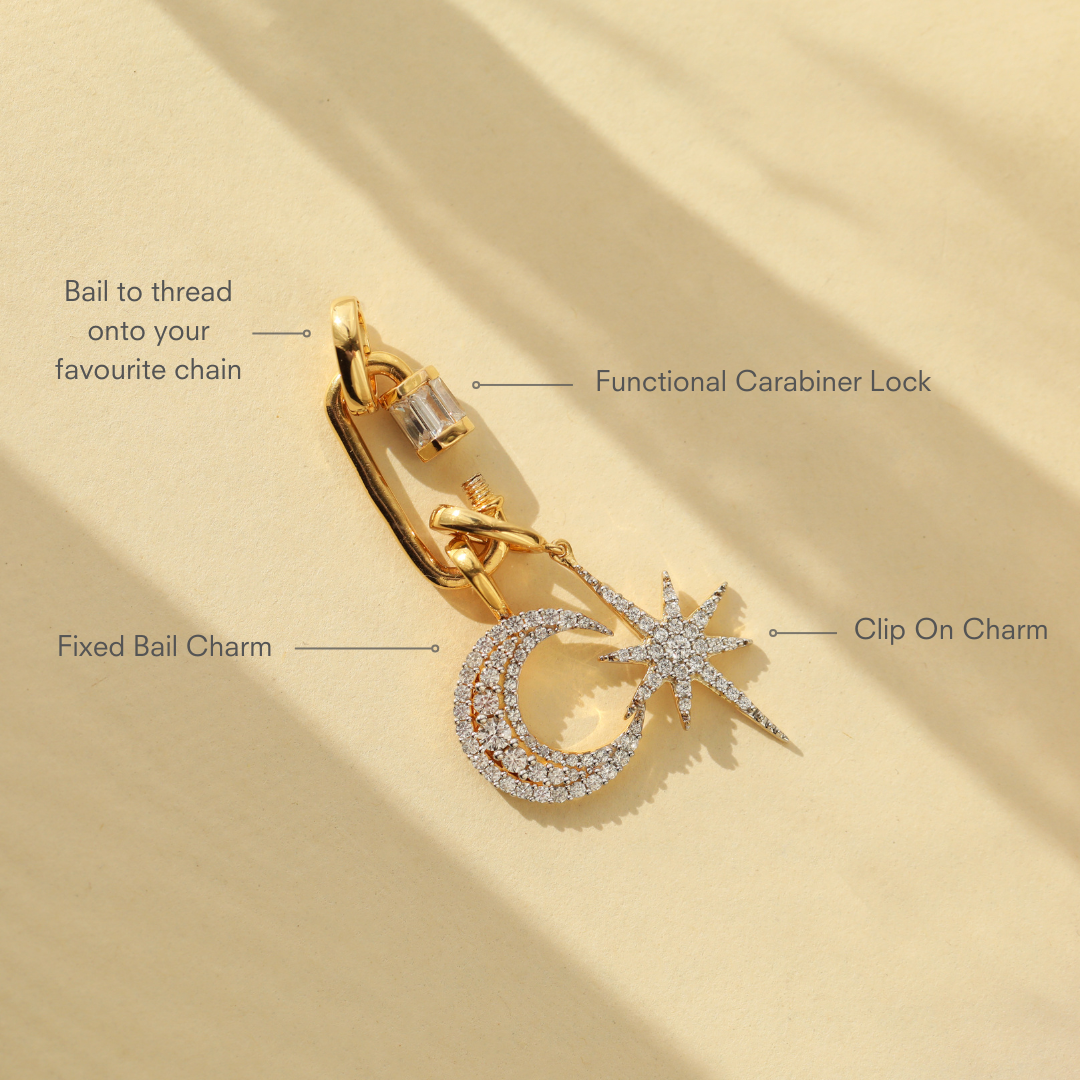 The functional carabiner, with a closed bail attached, allows the Harmony Lock Charm to be added to any chain. Wear alone as a sculptural pendant, or use to connect and layer your favourite charms and pendants. You can also interchange with the existing carabiner lock on our Vintage chain. Versatile and luxurious, it lets you design, curate and reimagine your collection.