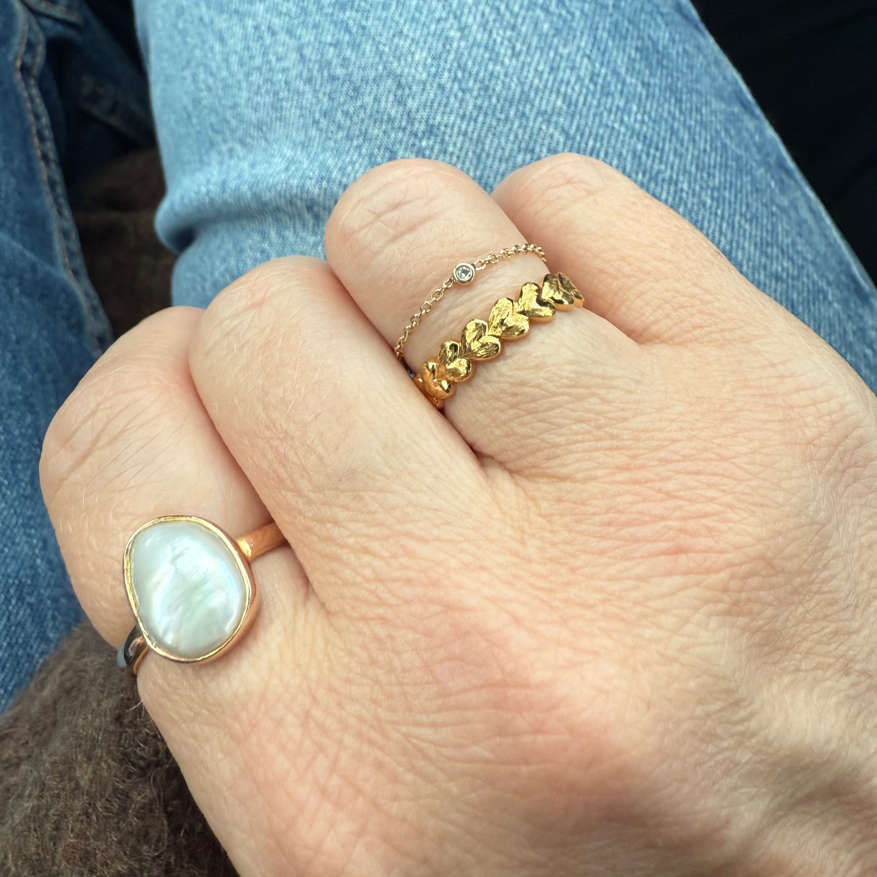 Make a statement in our organic baroque pearl ring! Each pearl is beautifully unique differing in shape, whilst shimmering an iridescent glow as you move!