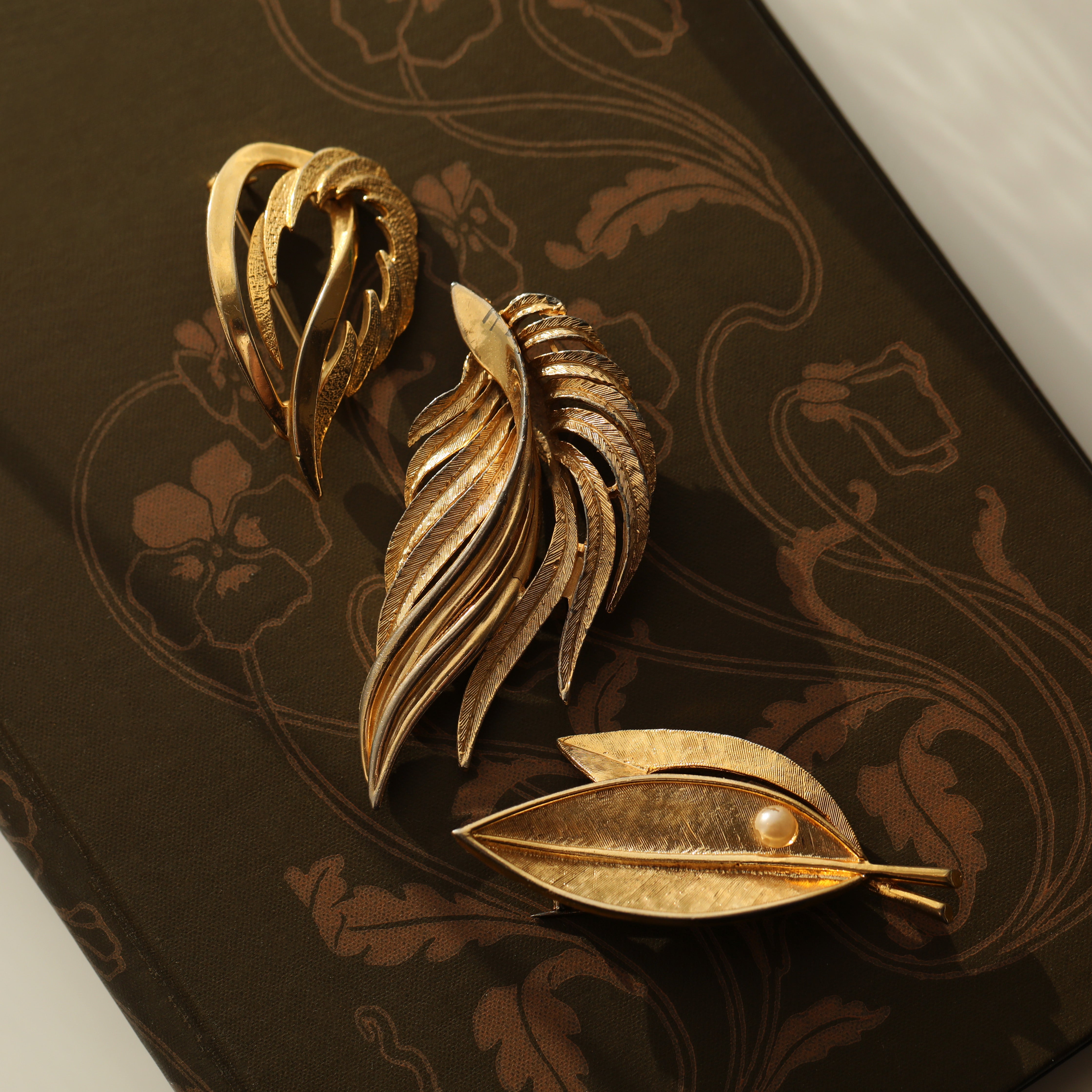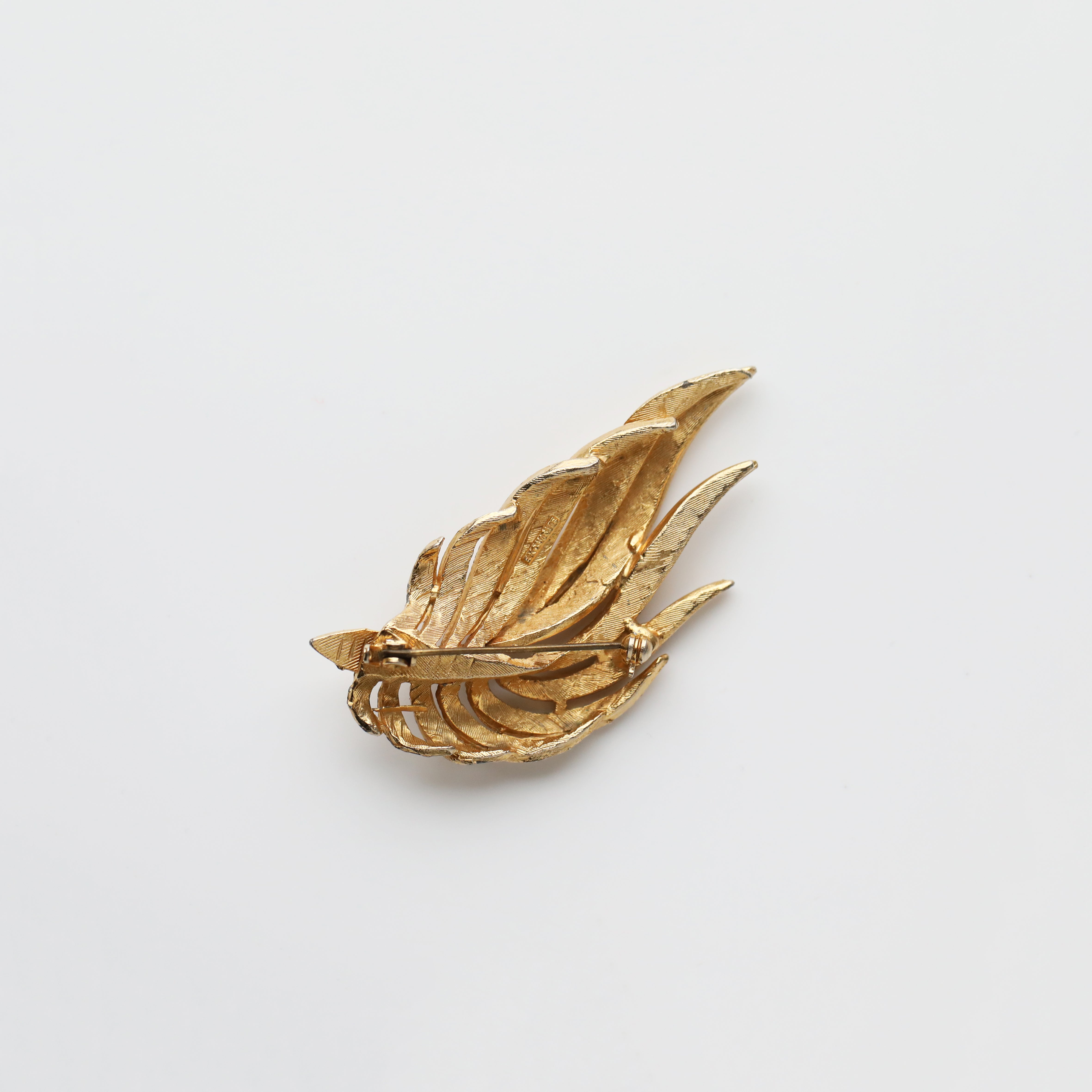 Vintage 80's Gold Plated Abstract Feather Brooch