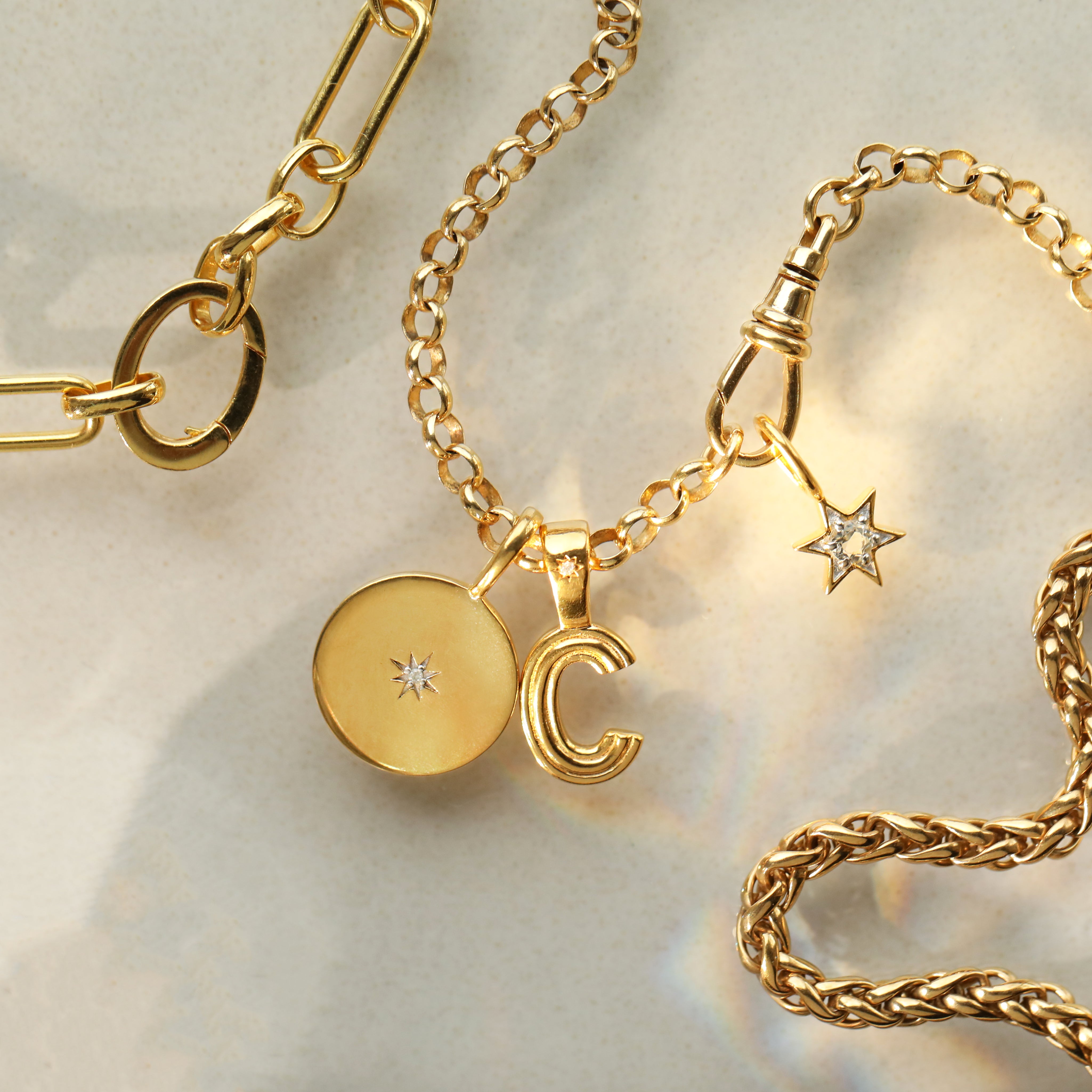 A vintage classic, reimagined for modern styling. Chunky curb chain fastens with a swivel clasp, allowing you to clip your favourite charms along the chain or onto the clasp — or both! Add one charm or many to create your own eclectic look.
