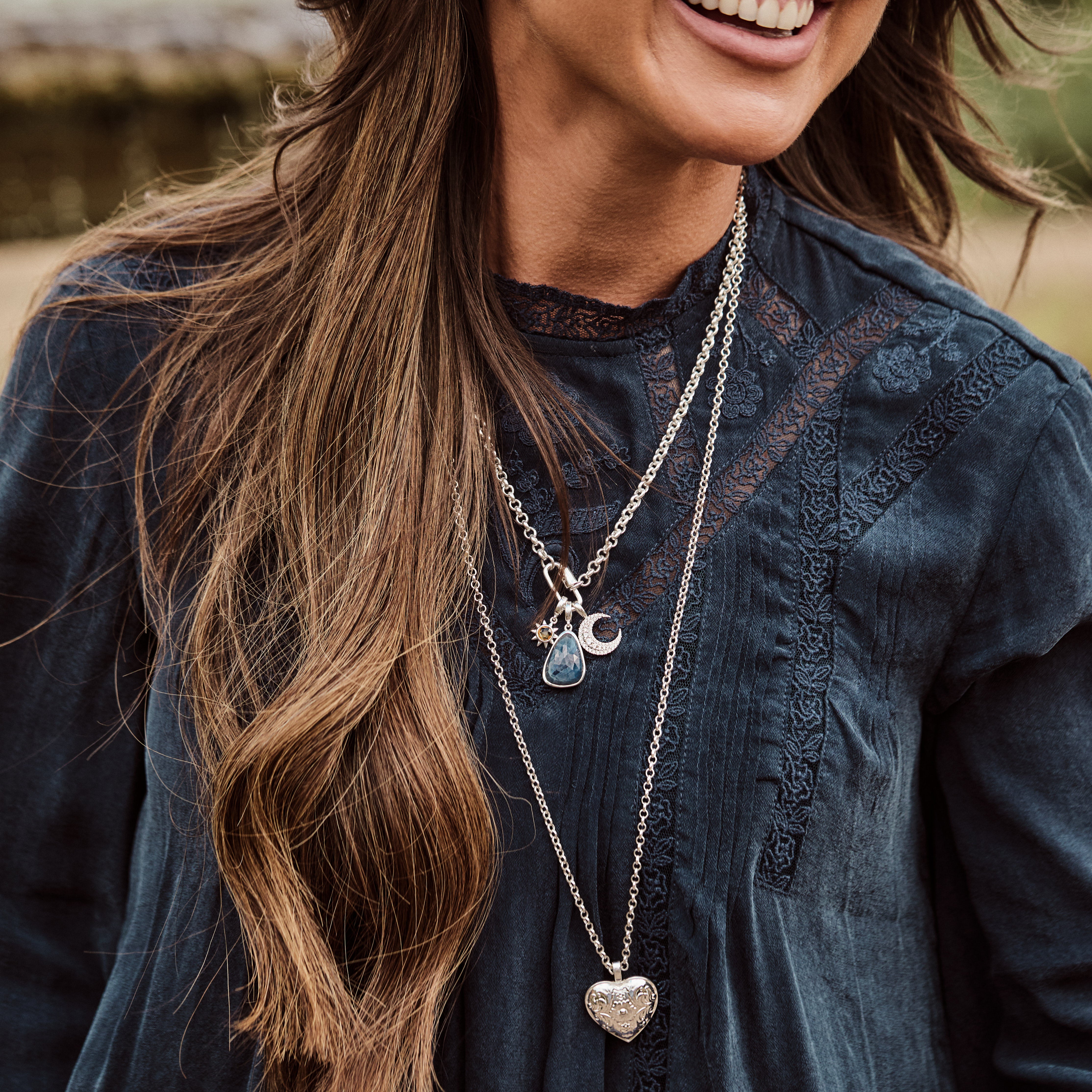 This vintage inspired chain is the perfect canvas for your lucky charms to be worn as an expression of your own unique journey. The unique, carabiner style star set lock enables you to mix and match the charms of your choice. Each cluster is personal to you and represents the experiences and memories that have brought you to where you are today.
