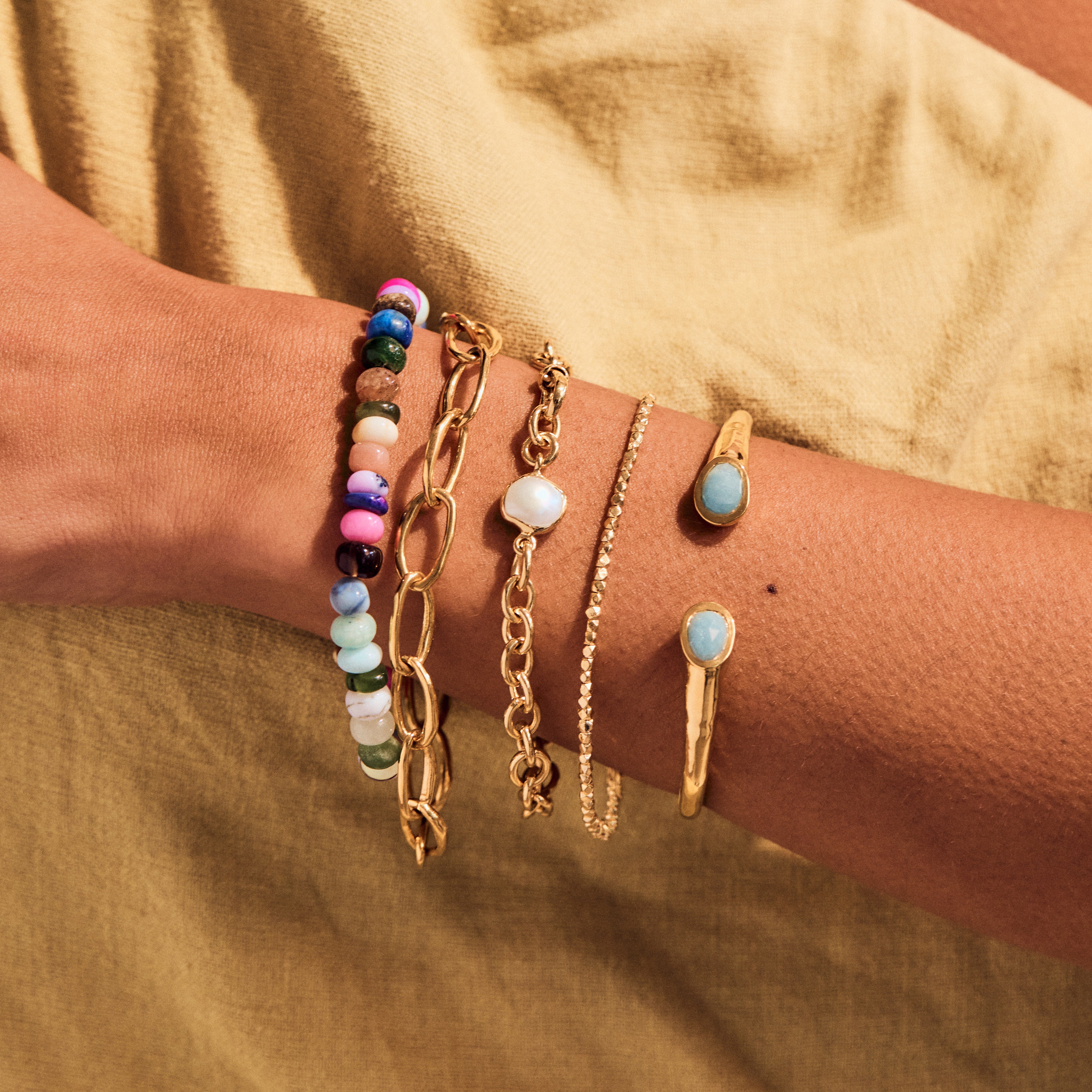 With its softly hammered links, the Molten Oval Opening Link chain bracelet is a modern classic with a bohemian feel.